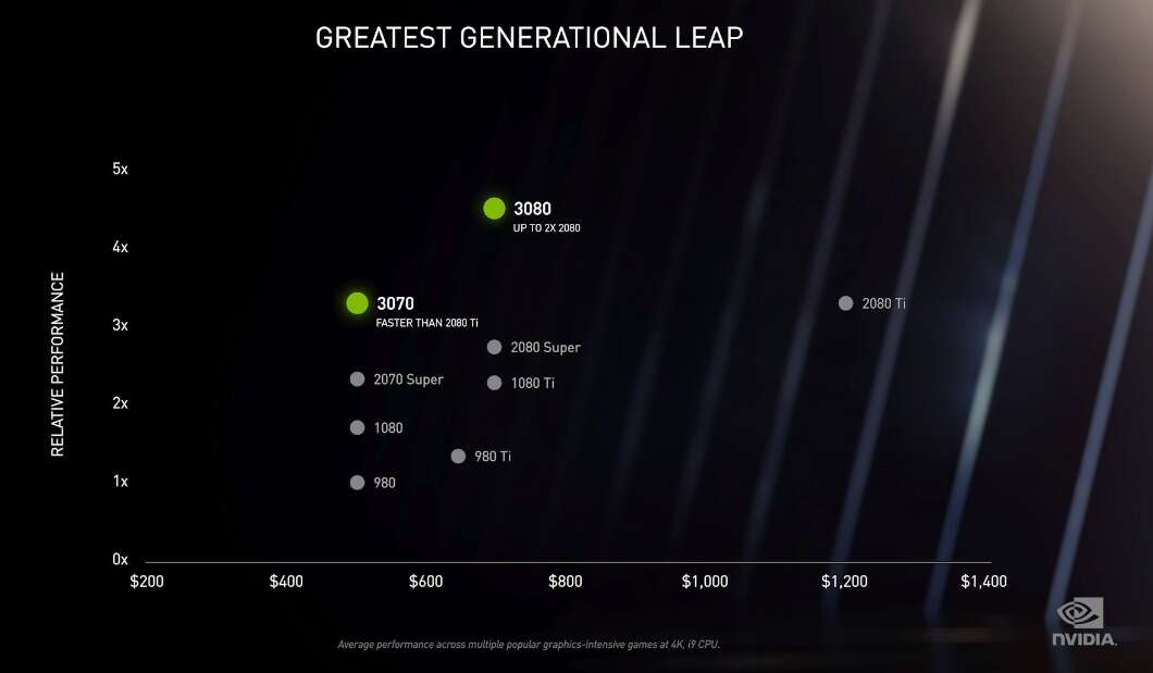 Dla pozostałych RTX 3080 będzie idealnym wyborem, jako że jest o nawet 30% szybszy od modelu RTX 2080 Ti. Innymi bowiem słowy, nowe GeForce RTX, to najwyższy skok wydajności graficznej względem poprzedniej serii od lat.