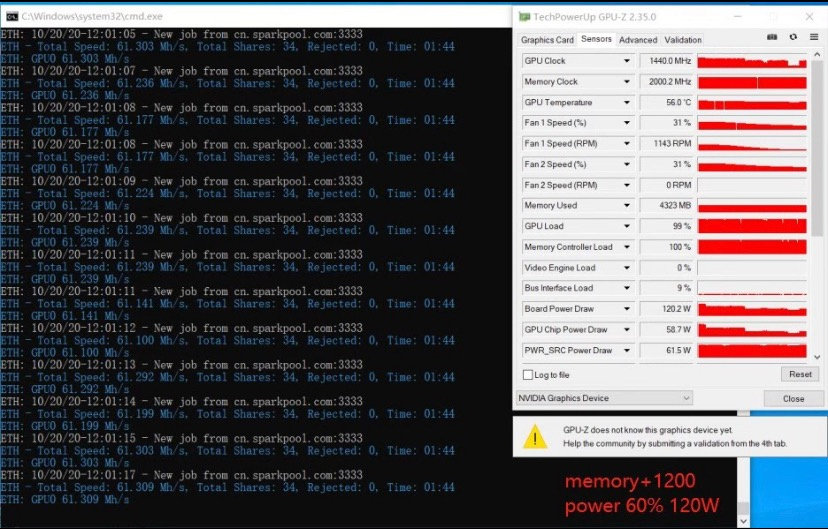 Użytkownik Chiphell pokazał, że nieznany model GeForce RTX 3060 Ti bardzo dobrze radzi sobie w tym zadaniu. Ograniczył on pobór mocy do 120 W i prze taktował pamięć RAM o 1200 MHz do efektywnych 16 Gbps.