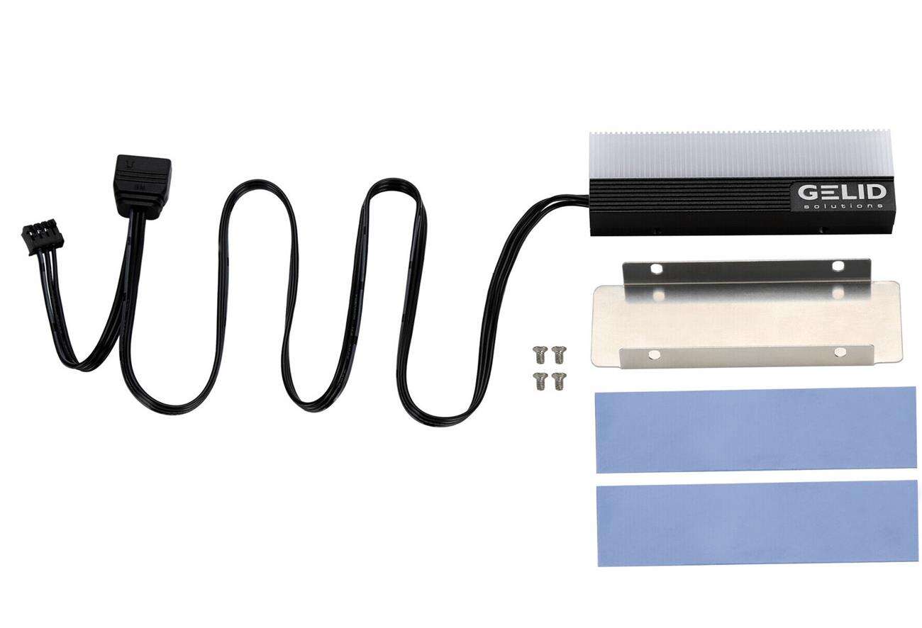 Gelid Glint ma moduł ARGB z 5 diodami LED. Można nim sterować za pomocą oprogramowania od płyty głównej – nie ma tutaj problemów z synchronizacją. Można też nim sterować poprzez zewnętrzny kontroler ARGB.