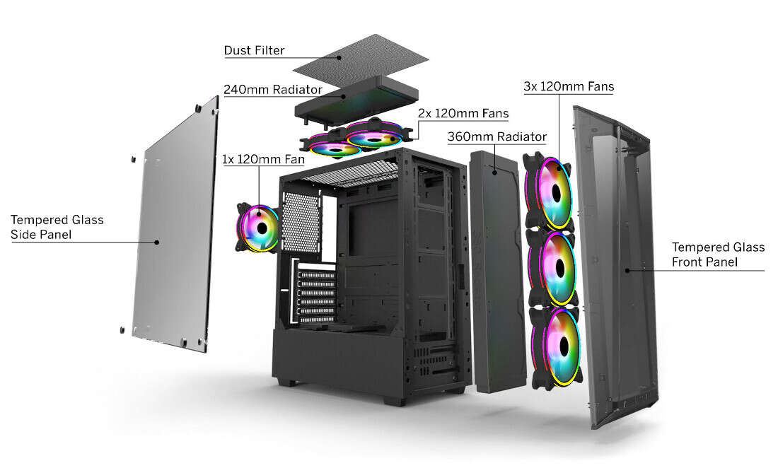 Battle Station X pomieści płyty główne o wielkości do ATX. Jej dokładne wymiary to 370 x 204 x 435 mm. Zarówno z przodu jak i boku znajdują się panele ze szkła hartowanego. Dzięki trzem dołączonym wentylatorom ARGB będzie ona świetnie się prezentowała.