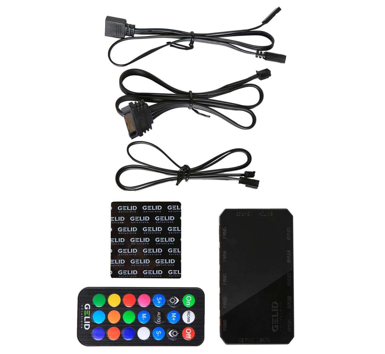 Wraz z kontrolerem otrzymujecie pilot RF, który zapewnia możliwość sterowania podświetleniem z odległości nawet 8 metrów. Sam kontroler zasilany jest ze złącza SATA oraz można go także zsynchronizować z płytą główną. producent do zestawu dodaje też Sticky Pad, dzięki czemu Gelid AMBER5 można łatwo zamontować w obudowie.