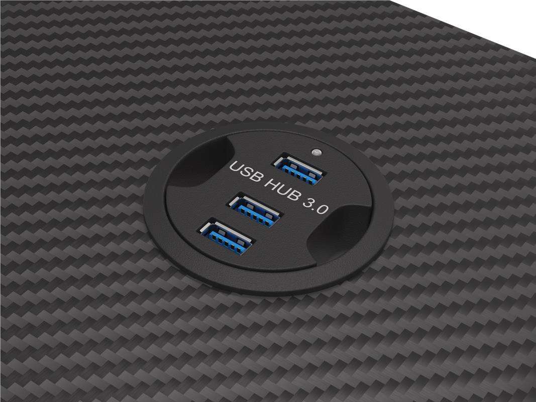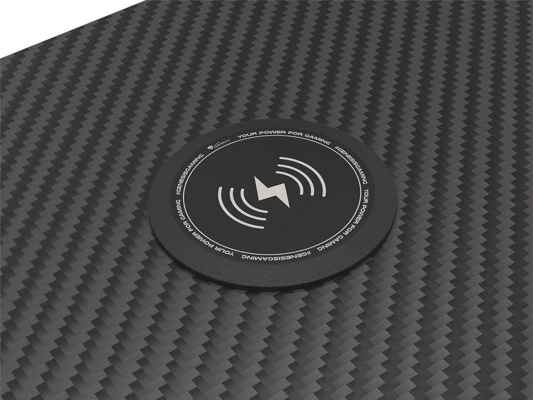 Dodatki w Genesis HOLM 510 RGB sprowadzają się od podświetlenia RGB na tyle, systemu organizacji przewodów, trzymadełka na kubek i słuchawki, zintegrowanego HUBu trzech USB 3.0 oraz bezprzewodowej ładowarki o mocy 10 W.