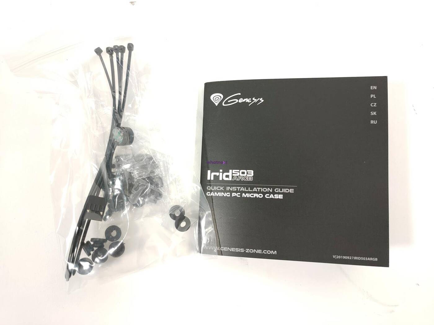 Akcesoria, które dostajemy wraz z obudową są standardowe. Mamy wiec instrukcję, zestaw śrubek i opaski zaciskowe. Nic specjalnego, ale też niczego nie brakuje.