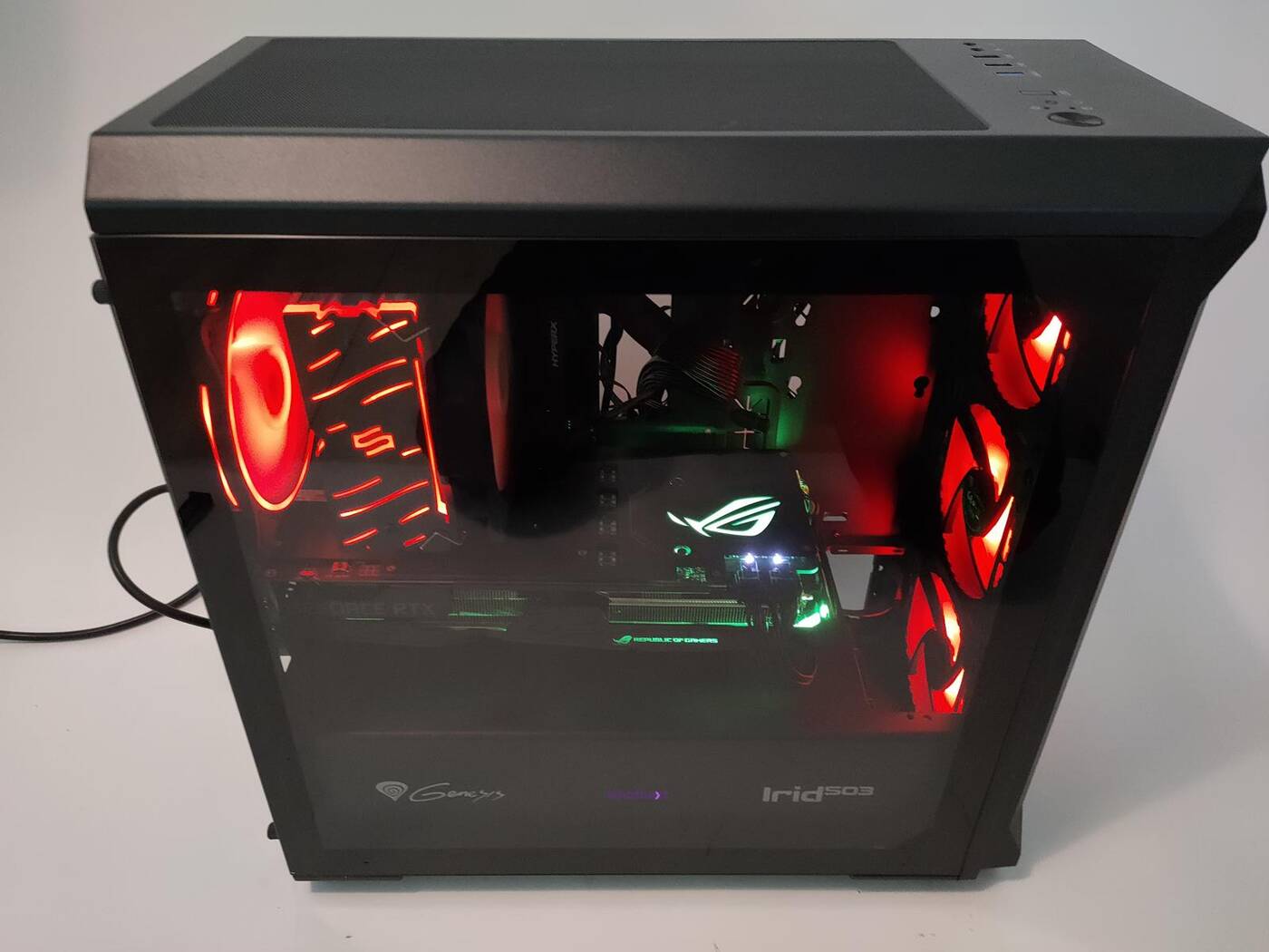 Obudowa ma cztery wentylatory, które są ciche, ale zapewniają przeciętny przepływ powietrza. Warto jednak pamiętać, że konstrukcja jest przeznaczona dla sprzętu średniej klasy i wtedy wykorzystana konfiguracja wentylatorów spokojnie wystarczy – nic nie powinno Wam się przegrzewać. Minusem jest też tylko jedno złącza USB na górze – niepotrzebnie producent wstawił dwa USB 2.0. Obudowa ma również filtr z przodu, na dole i na górze, choć ten drugi może być ciężki w zdejmowaniu i zakładaniu. Moim zdaniem Genesis Irid 503 ARGB to bardzo fajna obudowa, którą warto rozważyć we wspomnianej wcześniej cenie.