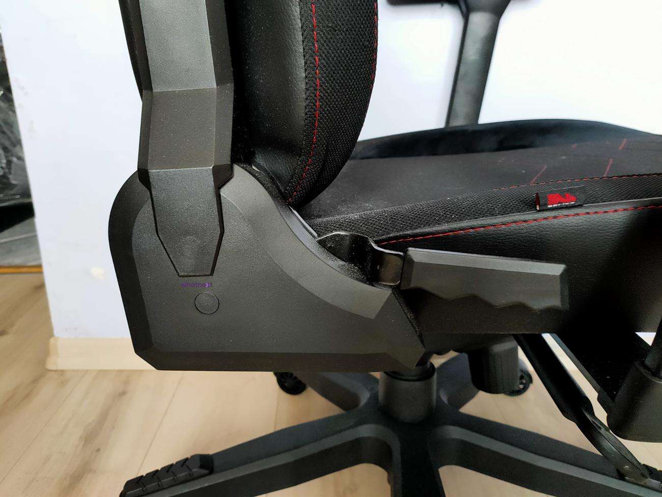 W praktyce świetnie sprawdza się regulowana część na kręgosłup lędźwiowy. Można dokładnie ustawić jej wypukłość i świetnie dopasować do własnego ciała. Rozwiązanie to uważam za znacznie lepsze od standardowo dodawanych poduszek. Kolejny plus to bardzo przyjemne wykonanie części, na której siedzimy. Ciało rzeczywiście nie poci się podczas długich rozgrywek czy pracy. Dodatkowo sam materiał raczej tak łatwo nie ulegnie Wam zepsuciu jak skóra ekologiczna. Warto też zwrócić uwagę na materiał obok samej tkaniny – jest on bardzo miękki, przez co naprawdę przyjemnie jest go dotykać.