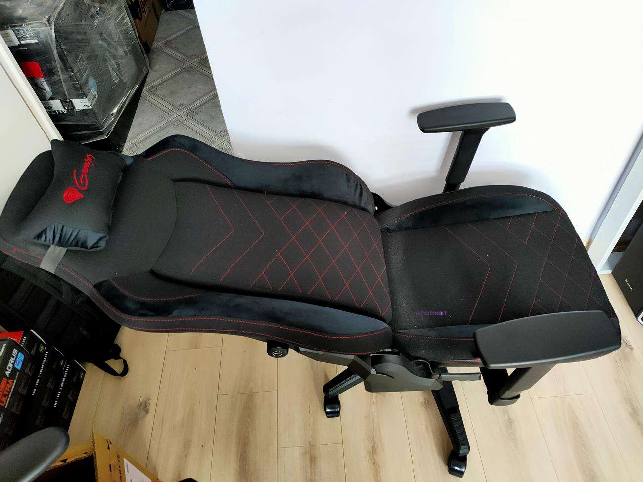 Fotel wygląda dobrze, choć tak naprawdę niczym większym się nie wyróżnia. jest on cały czarny i ma czerwone wstawki, w tym logo Genesis. Genesis Nitro 890 ma skórę ekologiczną tylko z tyłu, za oparcie. W większości jest on więc wykonany z odpornej na ścieranie tkaniny, która ma przy okazji zapewniać odpowiednią wentylację. Siedzisko i oparcie wypełnione są pianką, która ma zwiększyć żywotność całej konstrukcji.