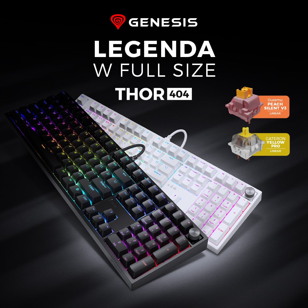GENESIS Thor 404 to pełnowymiarowa klawiatura mechaniczna stworzona z myślą o wymagających graczach, którzy nie uznają kompromisów. To rozwinięcie cenionej przez recenzentów wersji TKL, oferujące jeszcze więcej funkcji przy zachowaniu tego samego komfortu i precyzji działania w większej, zwartej obudowie.