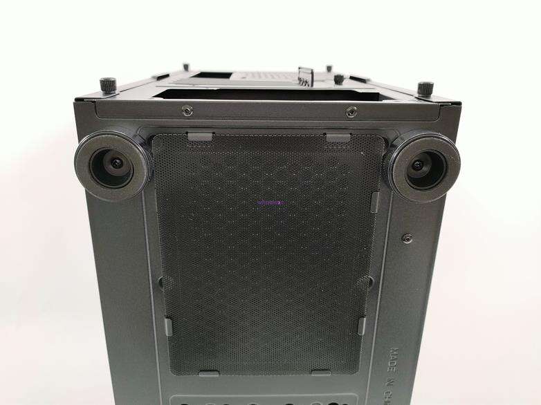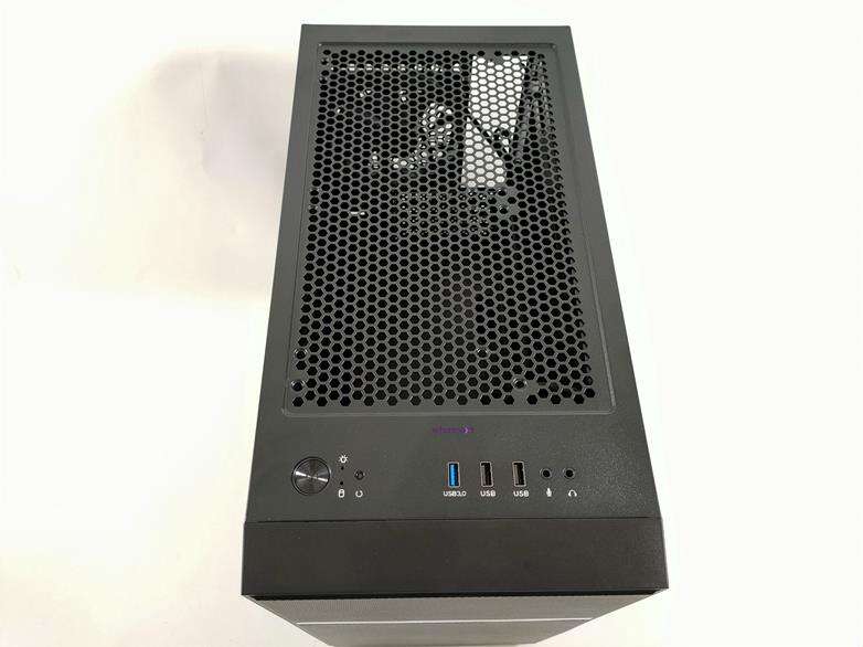 Na górze znajduje się miejsce na dwa wentylatory 120/ 140 mm lub chłodnicę 120/140/240 mm. Nad miejscem montażowym znajduje się filtr przeciwkurzowy montowany na magnes. Blisko przodu jest panel wejścia/wyjścia. Do dyspozycji mamy dwa złącza USB 2.0, jedno USB 3.0, wejście na mikrofon i wyjście na słuchawki. Szkoda jednak, że nie ma większej ilości złączy USB 3.0.