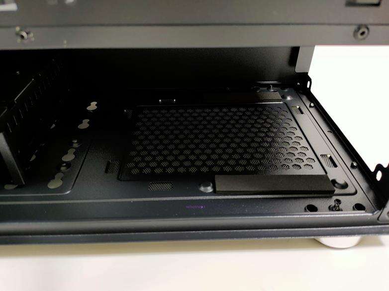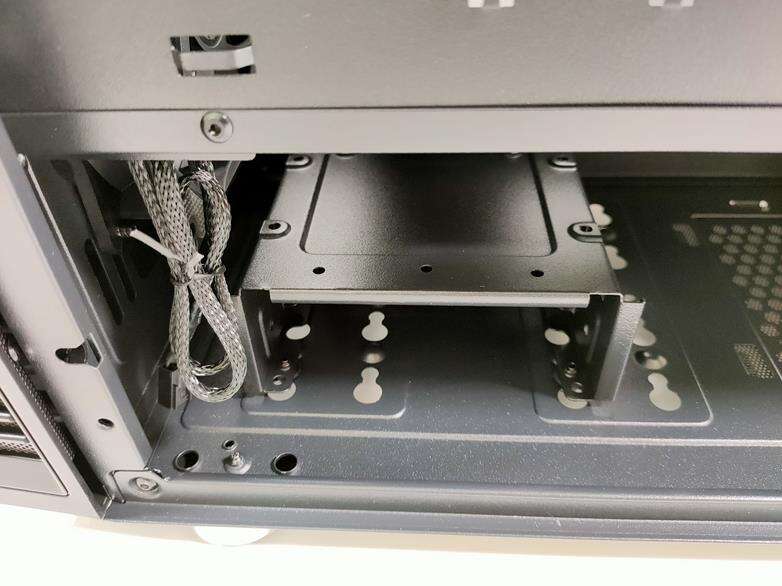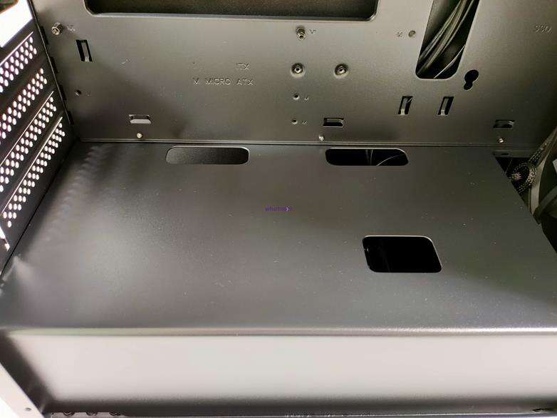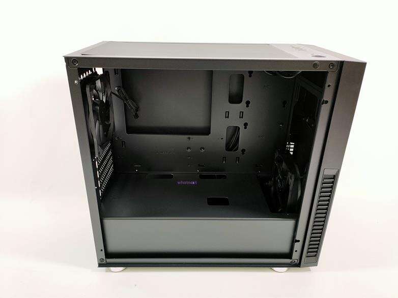 Wnętrze podzielone jest na dwie strefy. Metalowa obudowa ma wycięcie pozwalające zamontować z przodu chłodnicę oraz otwory do przeciągnięcia okablowania.