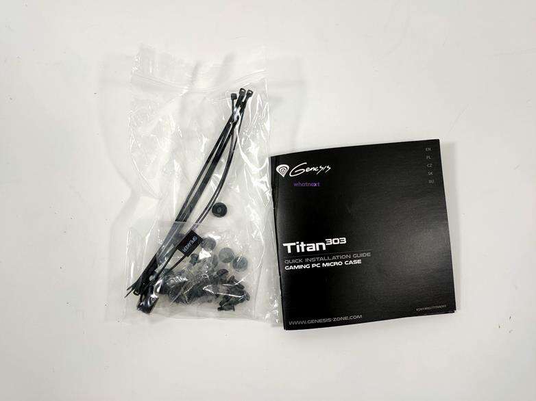 Obudowę otrzymujemy wraz z instrukcją, śrubkami, speakerem i opaskami zaciskowymi. Miło, że producent dodał te ostatnie – przydadzą się one podczas układania okablowania.