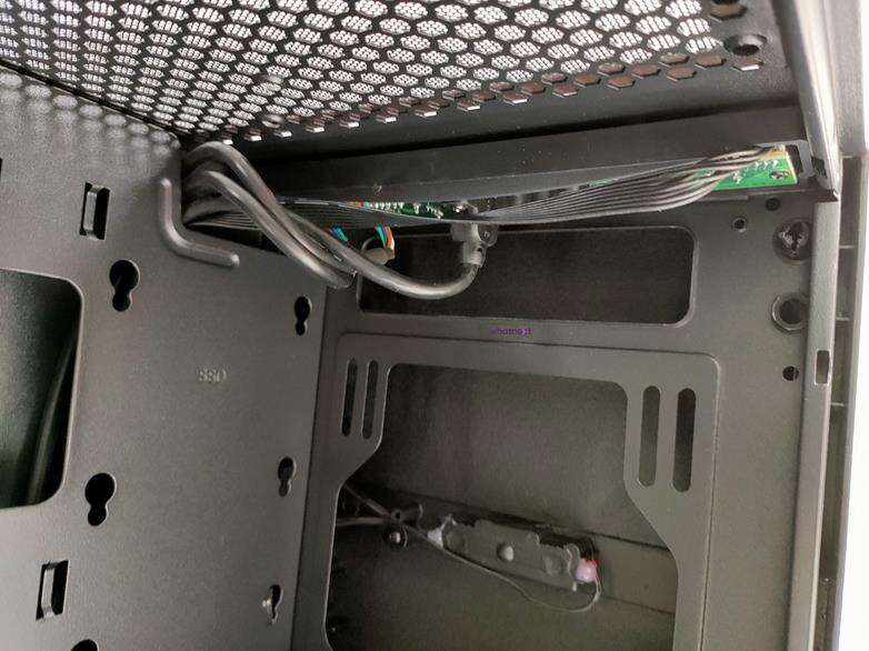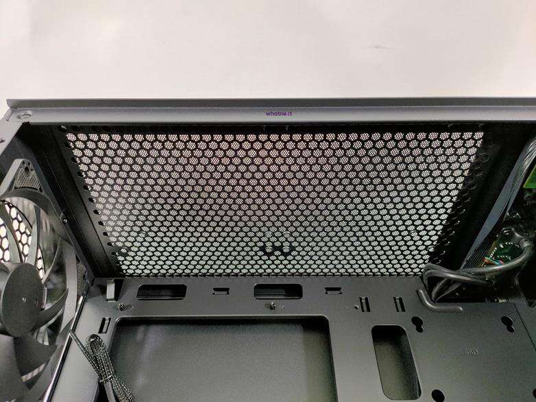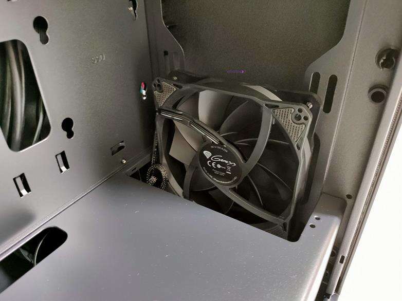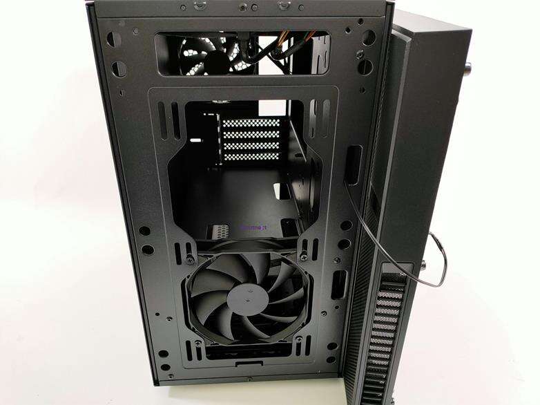 Po zdjęciu panelu możecie zobaczyć 120 mm wentylator. Łącznie z przodu zmieścicie dwa śmigła 120mm lub dwa 140 mm. Jest też miejsca na chłodnicę 120/ 140/ 240 mm.