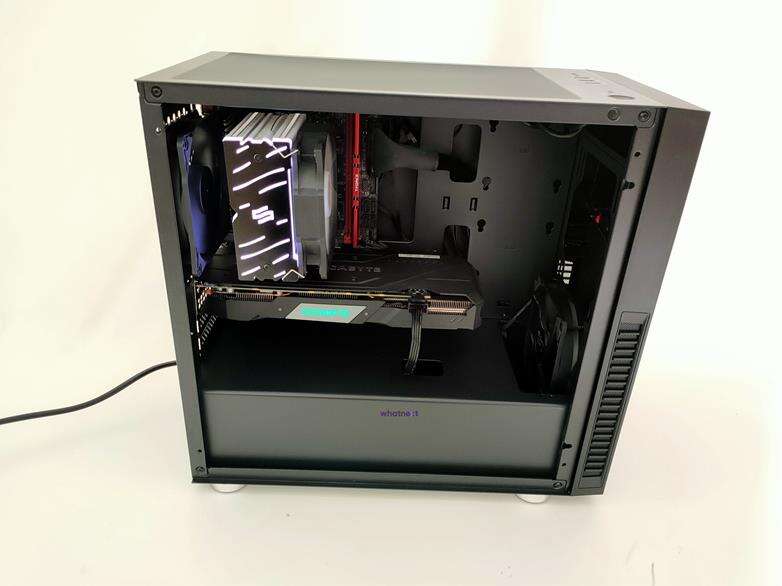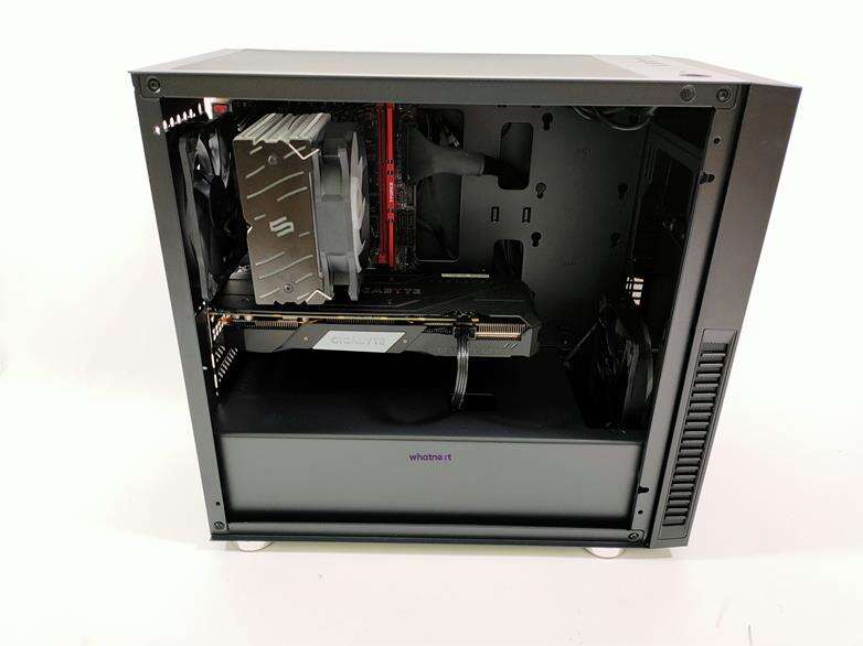 Składanie komputera przebiegło bez problemów. System zarządzania okablowaniem pozwala łatwo i szybko ukryć przewody – nie trzeba się z tym męczyć. Zasilacz wkładany jest od boku i rzeczywiście jest tam sporo miejsca.