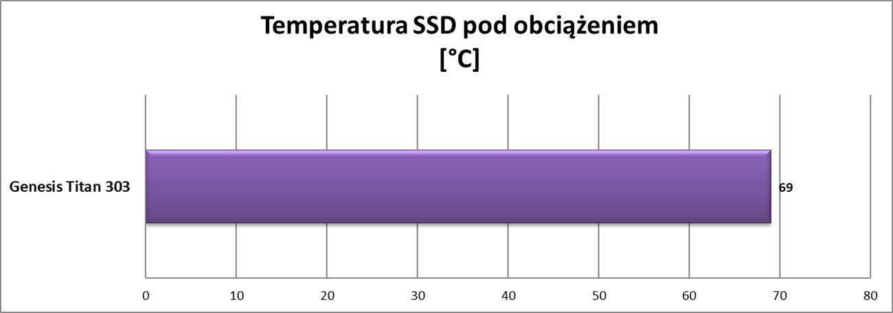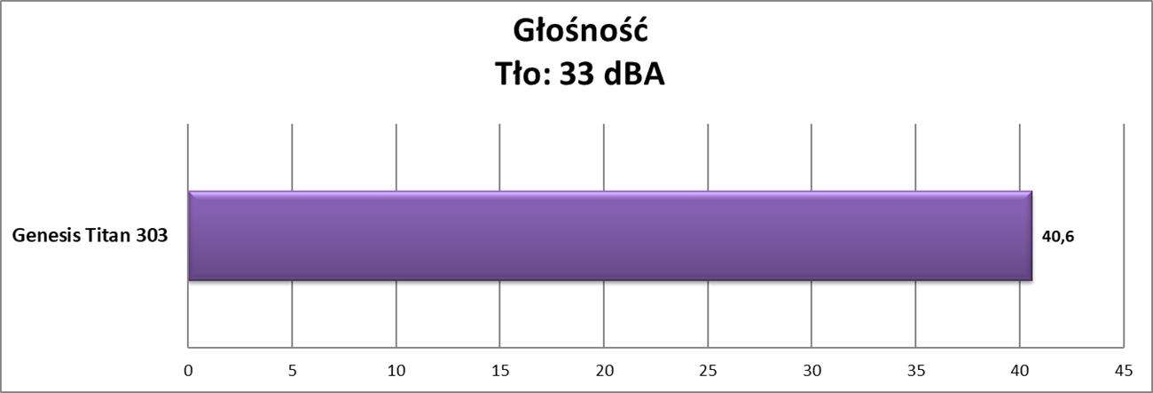 Przepływ powietrza w Genesis Titan 303 nie jest wybitny. Pomimo obecności dwóch wentylatorów temperatury są dosyć spore. Wynika to z faktu mocnego zabudowania przedniego panelu, co negatywnie wpływa na przepływ powietrza w obudowie. Całość jest za to stosunkowo cicha – wentylatorów raczej nie usłyszycie podczas pracy.