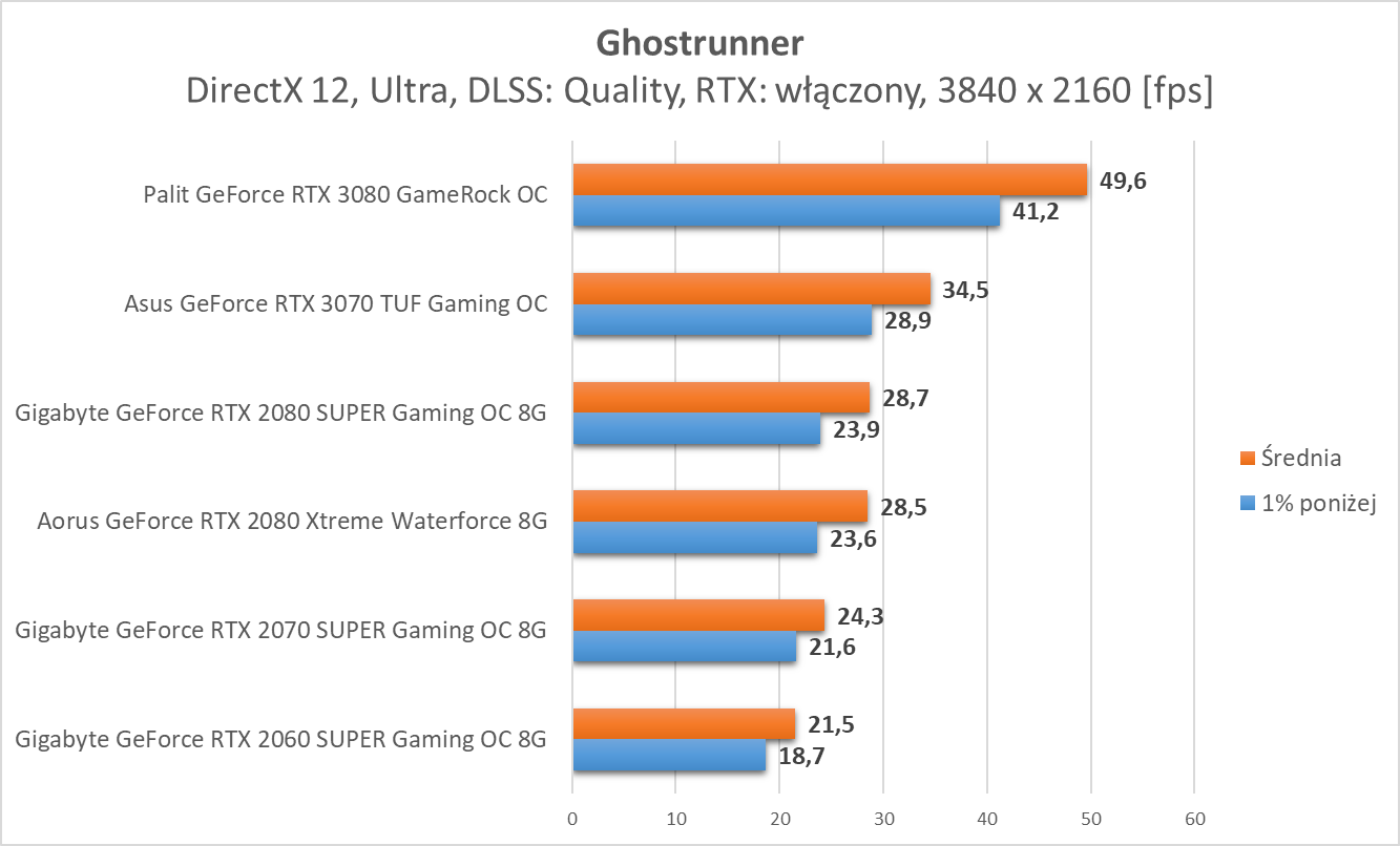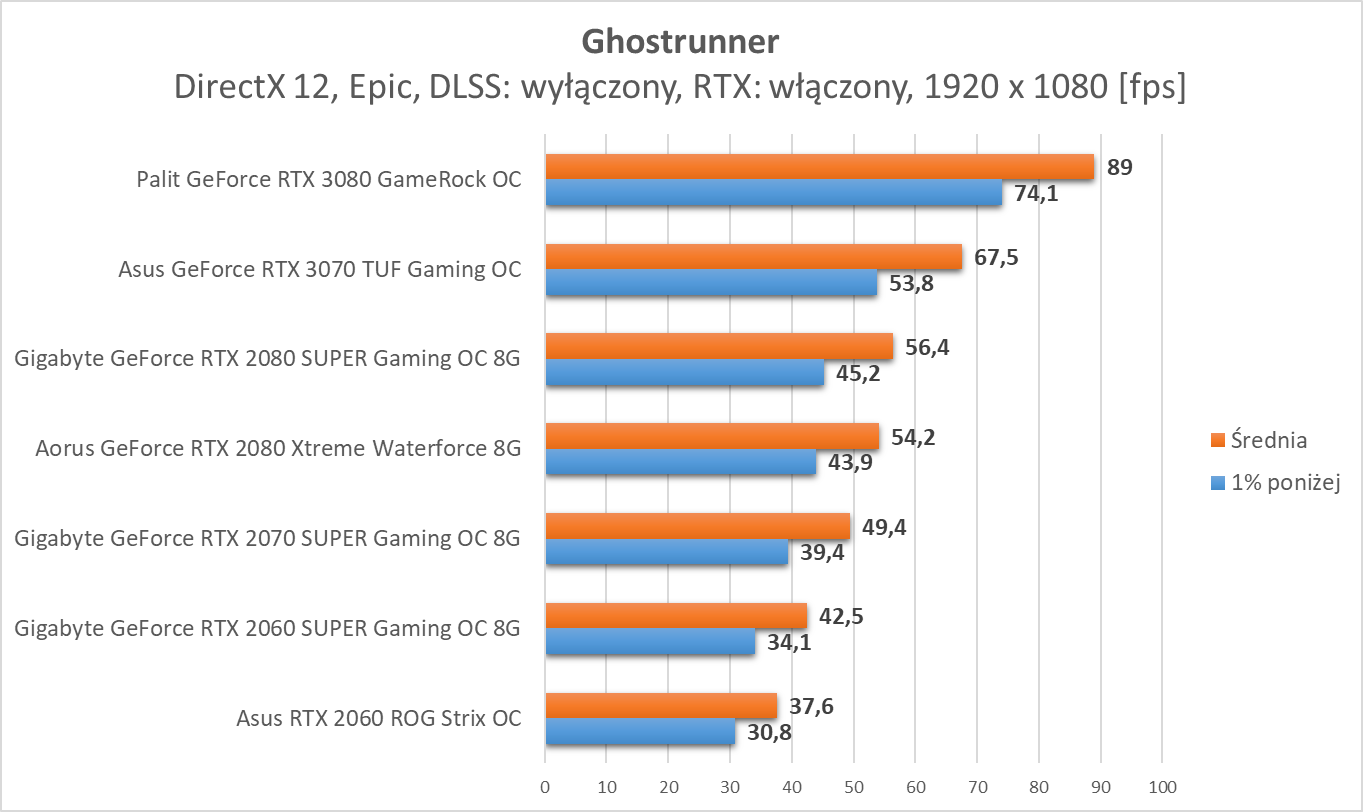 Ghostrunner to jedna z najnowszych gier, która obsługuje ray tracing i DLSS. Warto więc sprawdzić, jak spisują się w niej karty graficzne Nvidia.