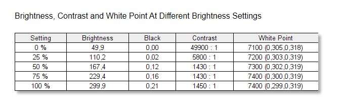 Jak więc sami widzicie po wybraniu ustawienia Gamma 5 będzie ona idealna. Kolejna rzecz to punkt bieli, który wynosi 7400K. Przy ustawieniu Cold jest on równy 9500K, a Warm 5400K. Niestety tutaj ideału nie będzie. Konstrast wynosi 1450:1, co jest znakomitym wynikiem.