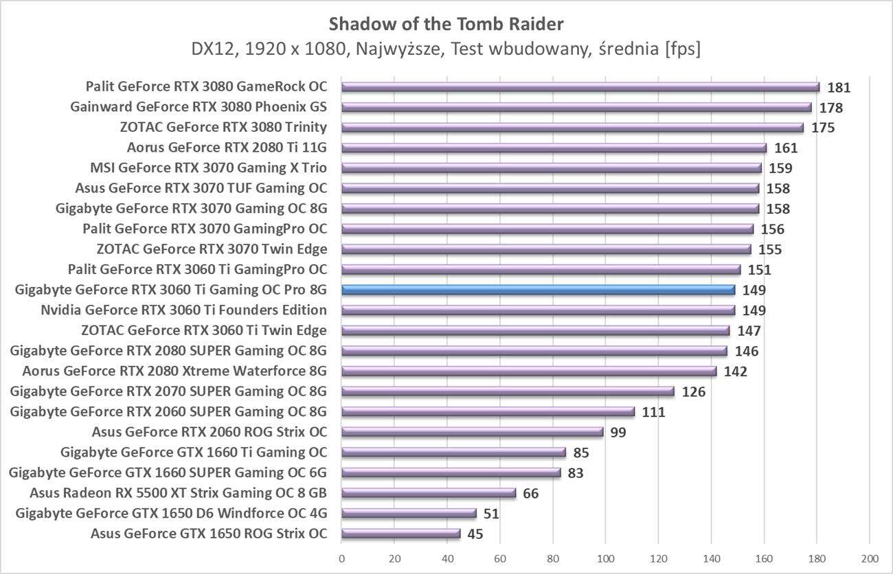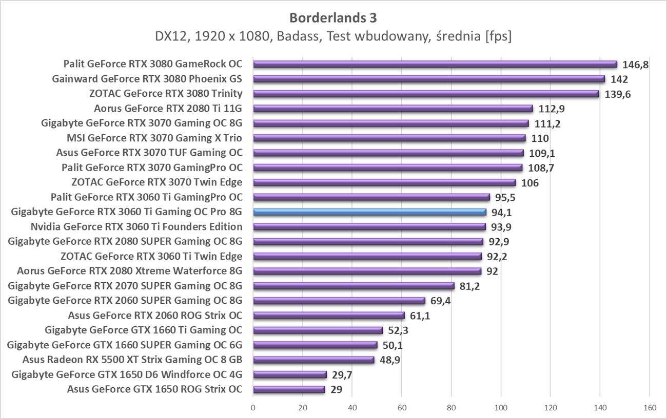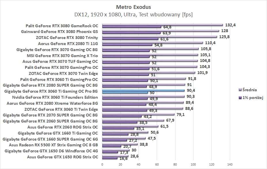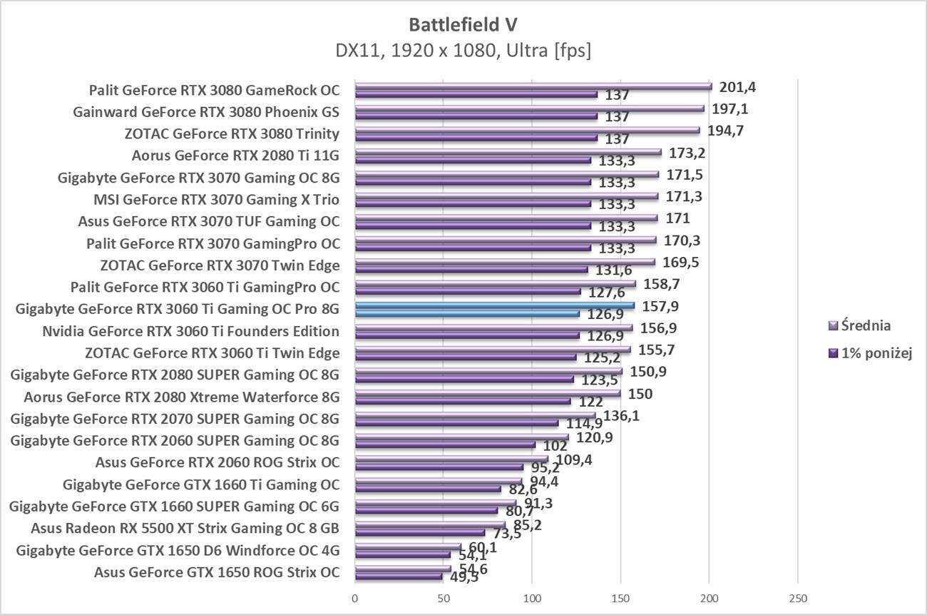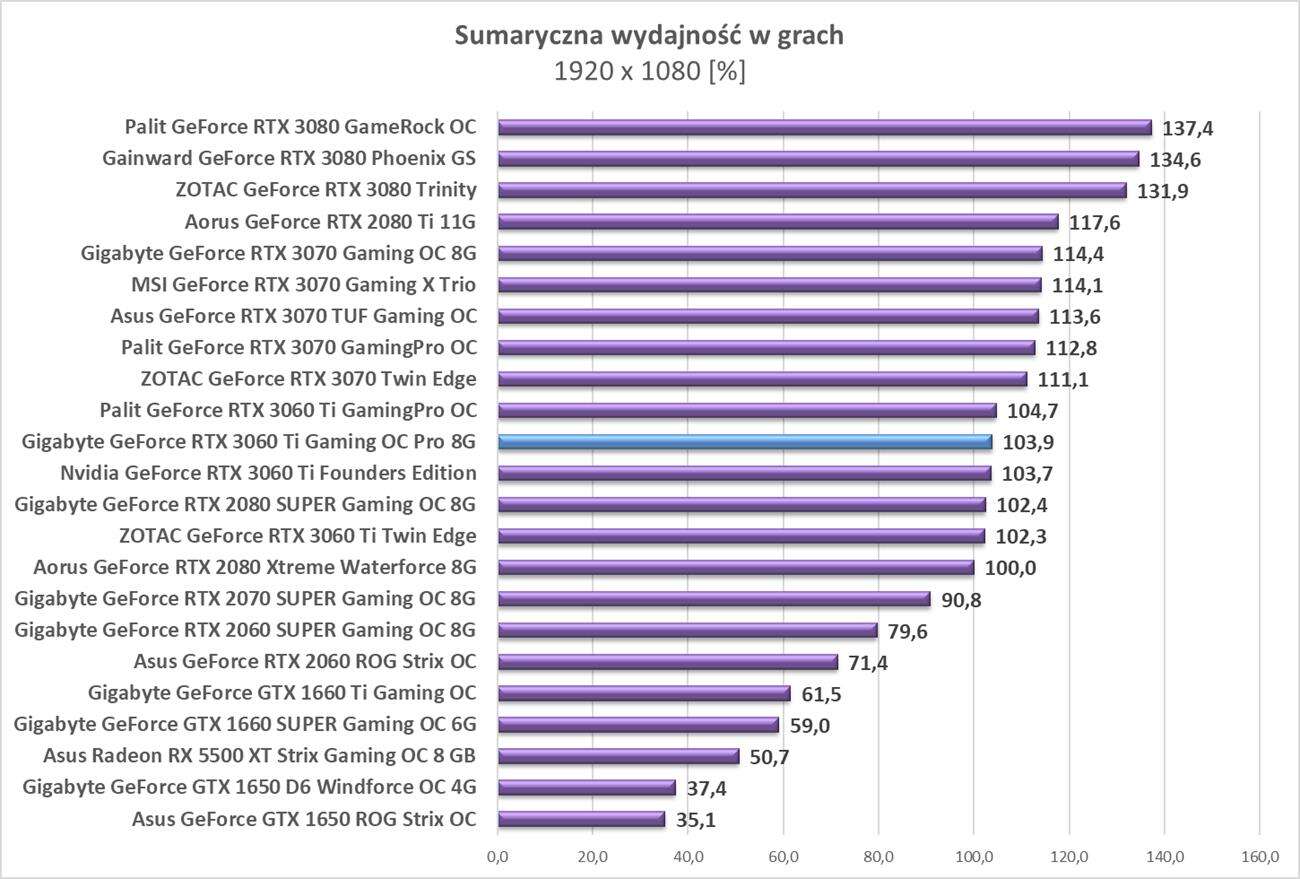 Testy Gigabyte GeForce RTX 3060 Ti Gaming OC Pro 8G w rozdzielczości 1920 x 1080
