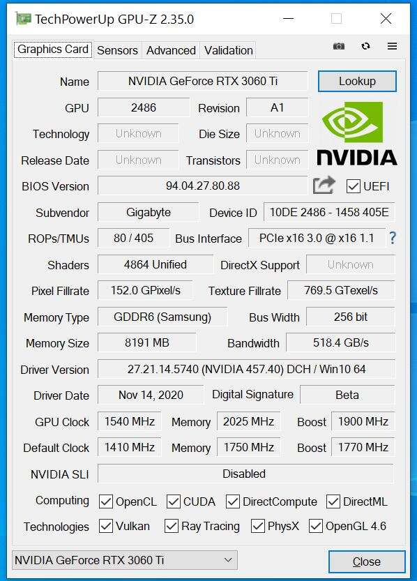 Podkręcanie Gigabyte GeForce RTX 3060 Ti Gaming OC Pro 8G