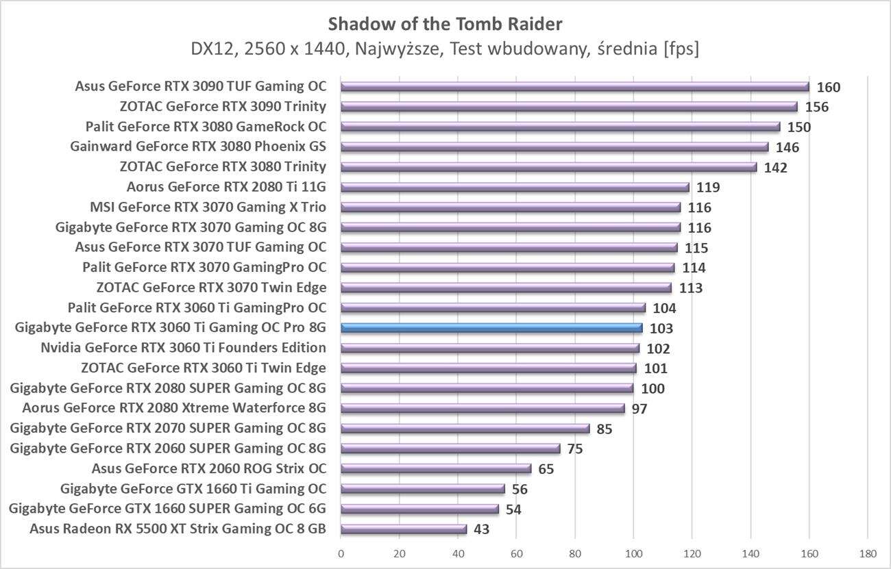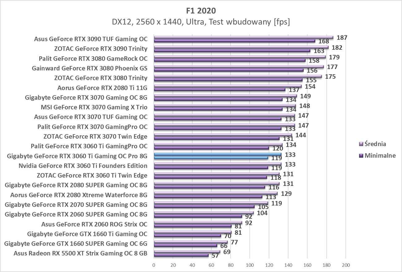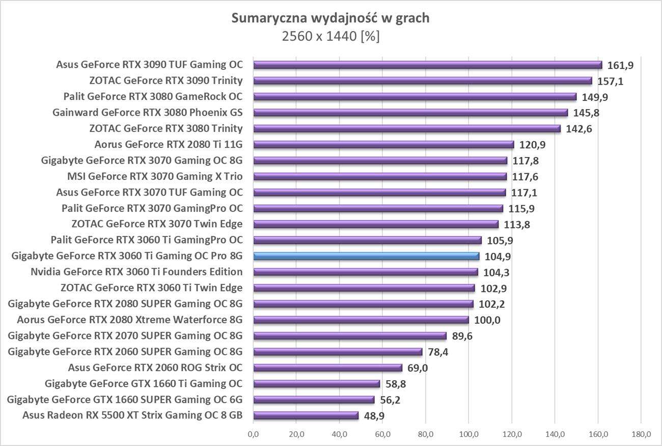 Testy Gigabyte GeForce RTX 3060 Ti Gaming OC Pro 8G w rozdzielczości 2560 x 1440