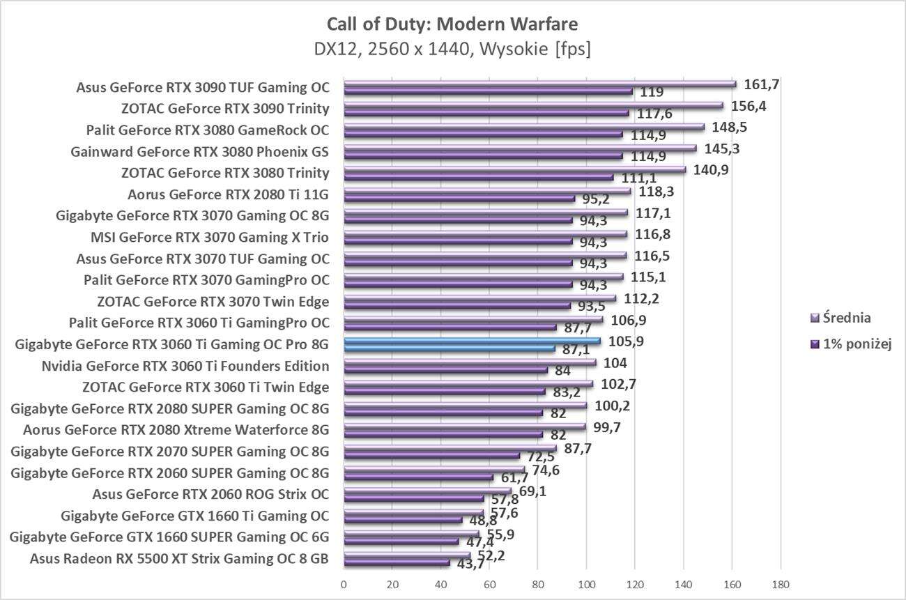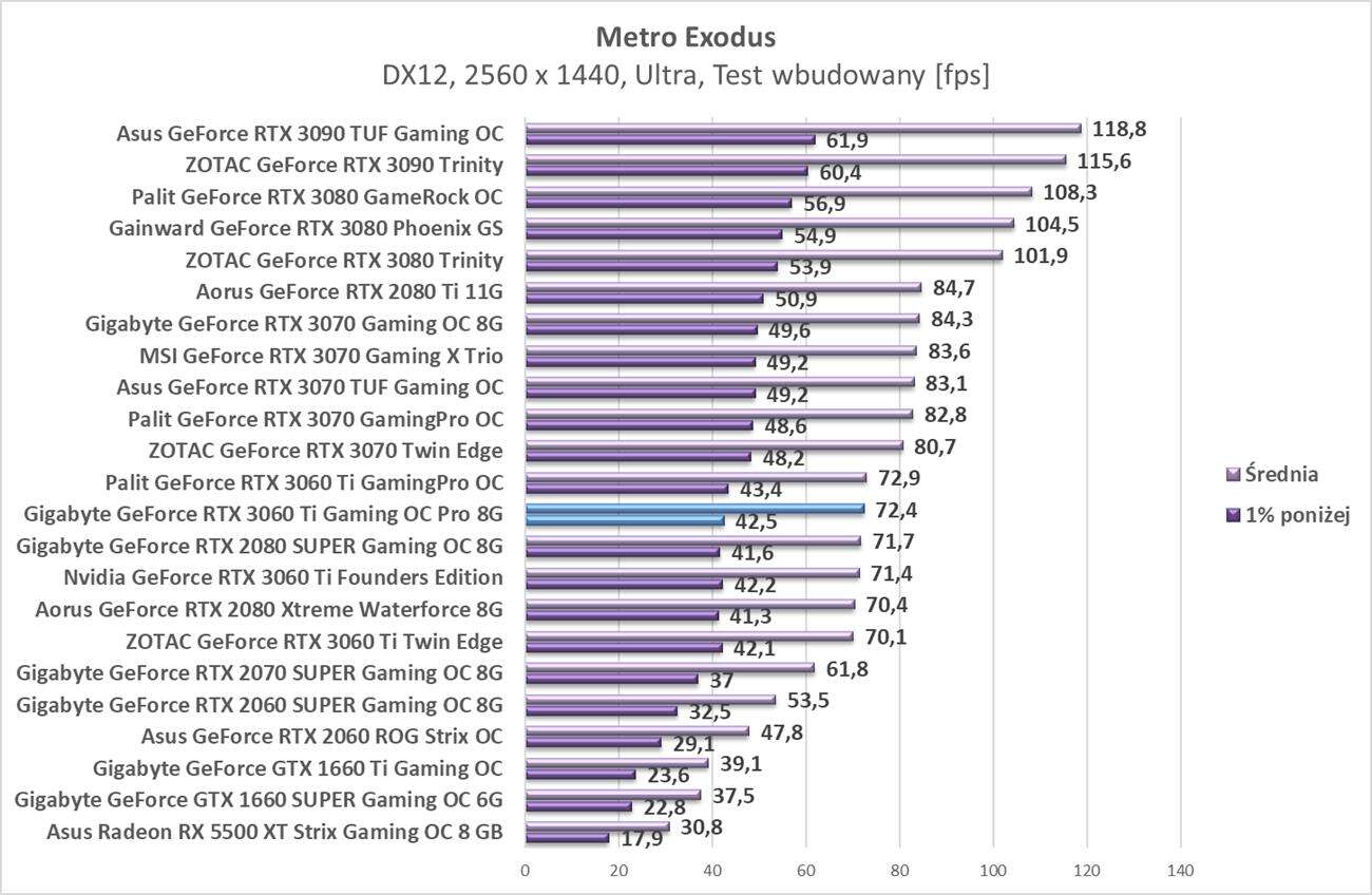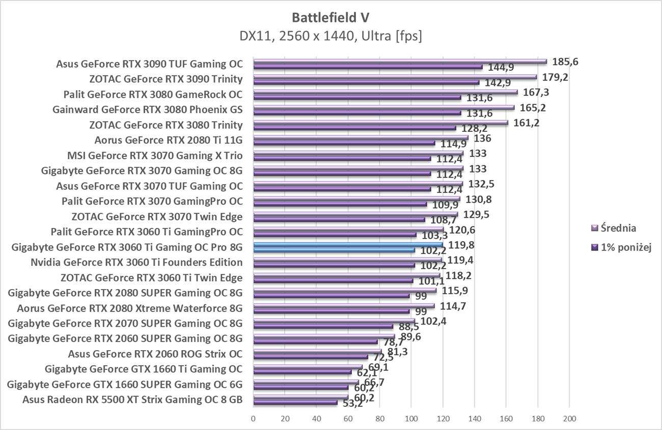 Testy Gigabyte GeForce RTX 3060 Ti Gaming OC Pro 8G w rozdzielczości 2560 x 1440