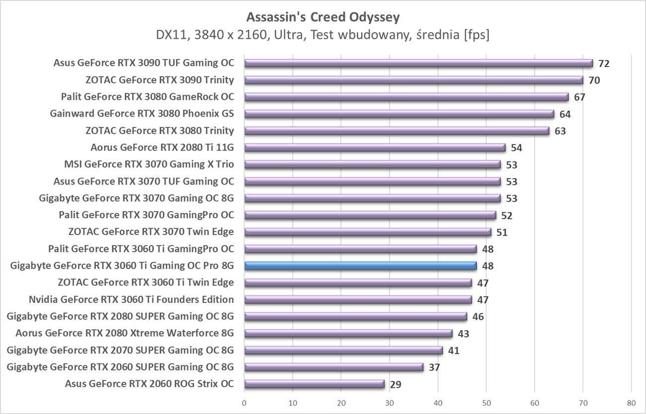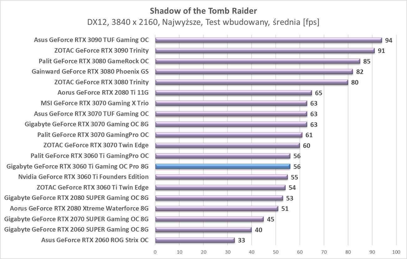 Testy Gigabyte GeForce RTX 3060 Ti Gaming OC Pro 8G w rozdzielczości 3840 x 2160