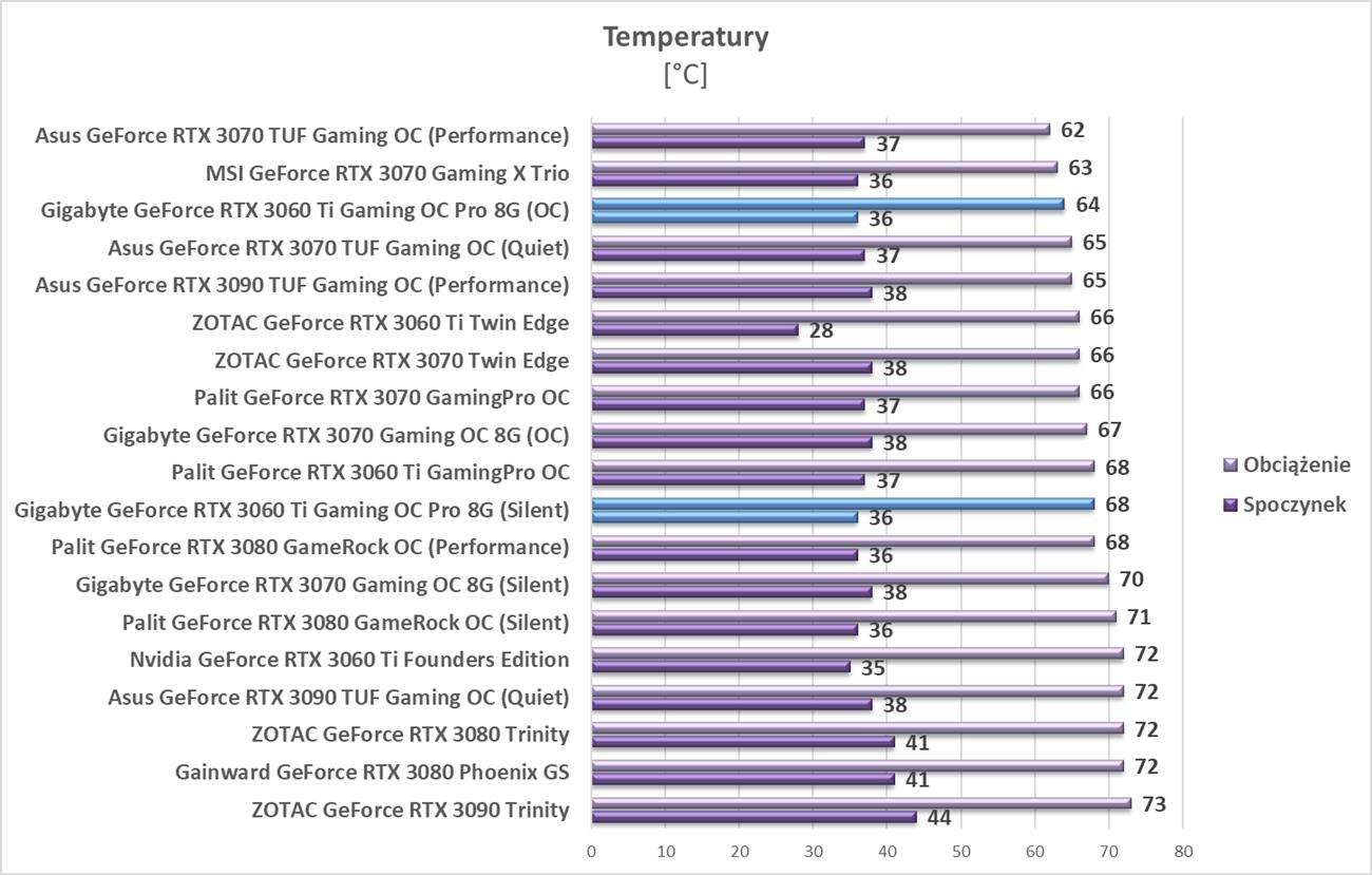 Temperatury, głośność, pobór mocy Gigabyte GeForce RTX 3060 Ti Gaming OC Pro 8G