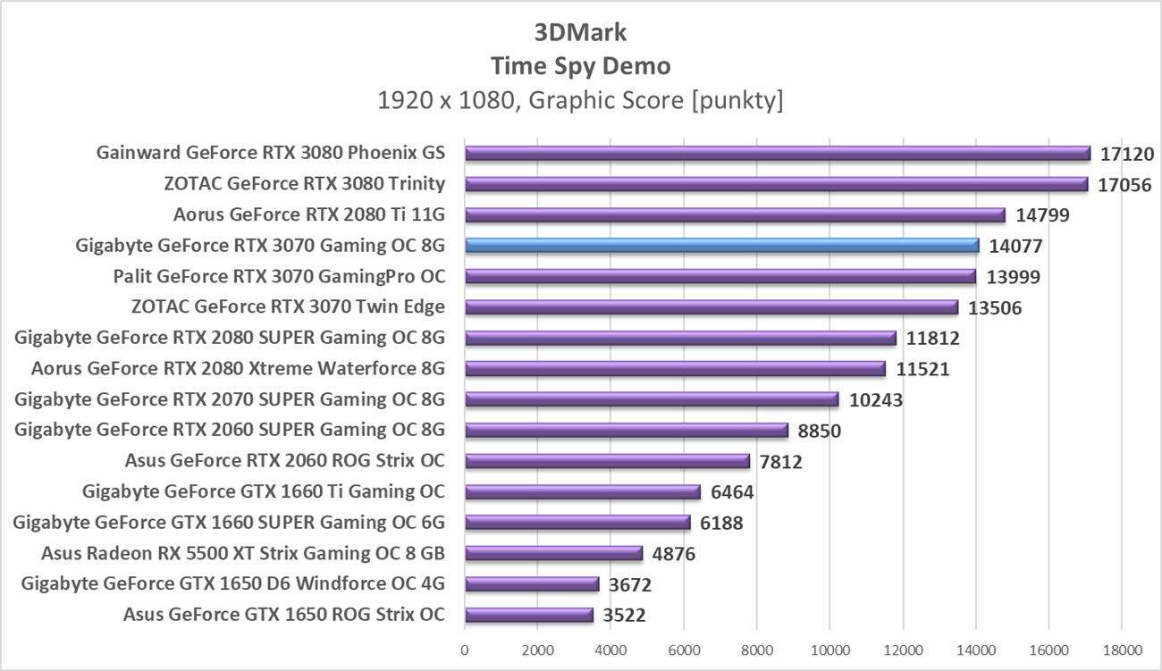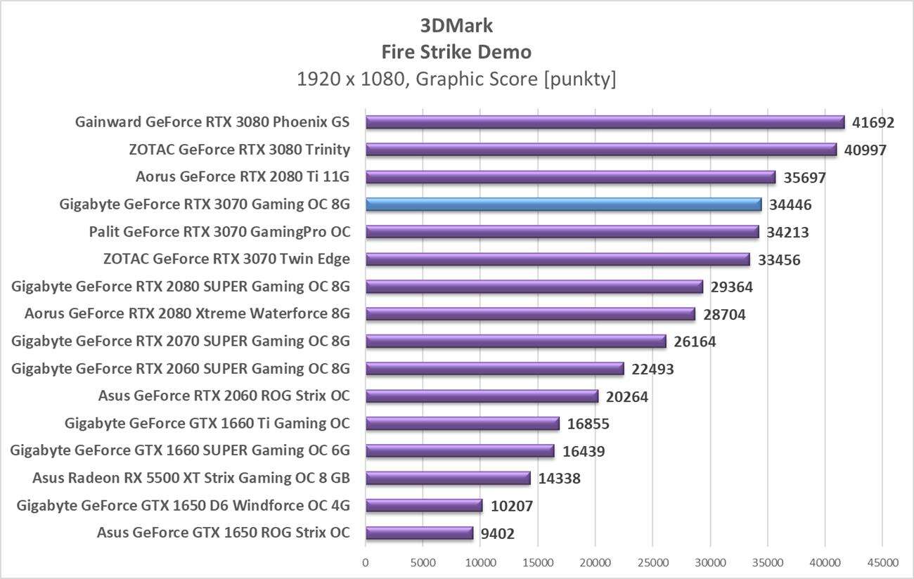 Sumaryczna wydajność Gigabyte GeForce RTX 3070 Gaming OC 8G
