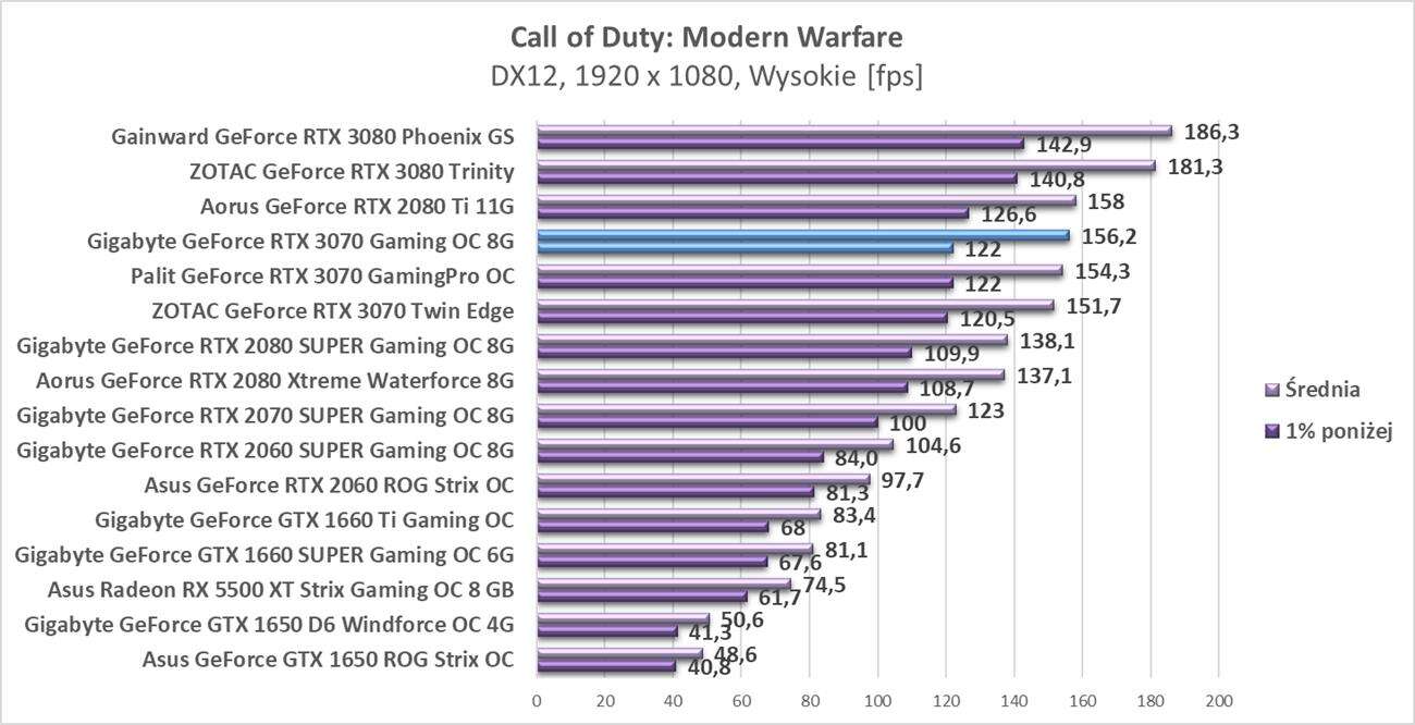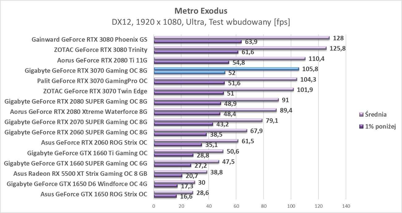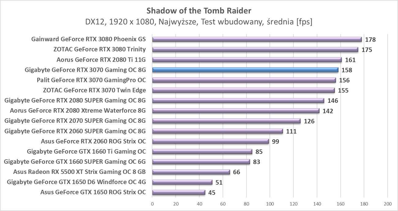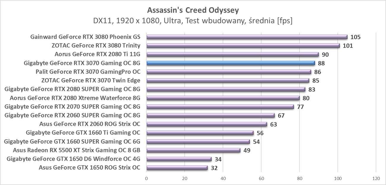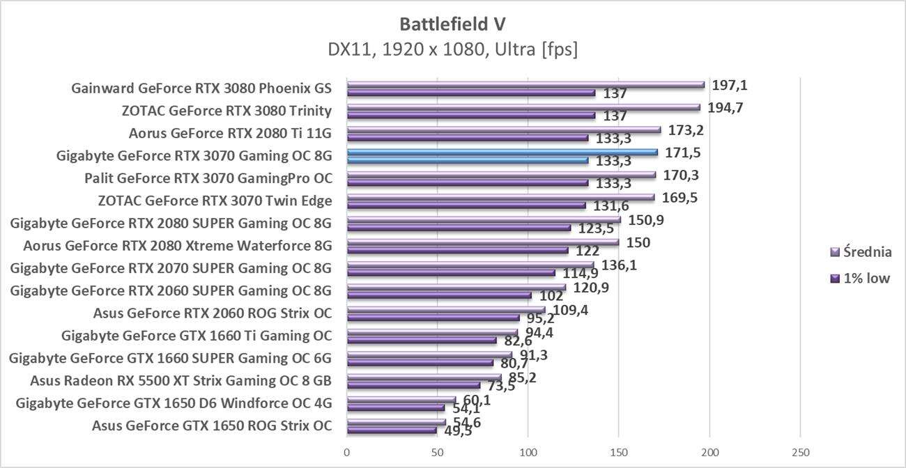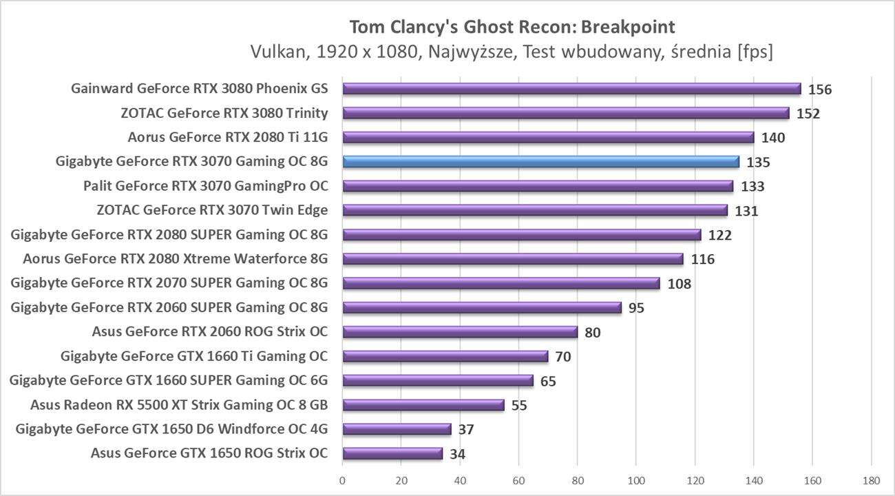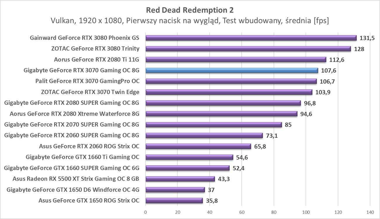 Testy Gigabyte GeForce RTX 3070 Gaming OC 8G w rozdzielczości 1920 x 1080