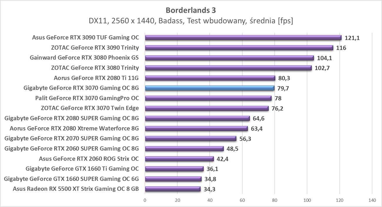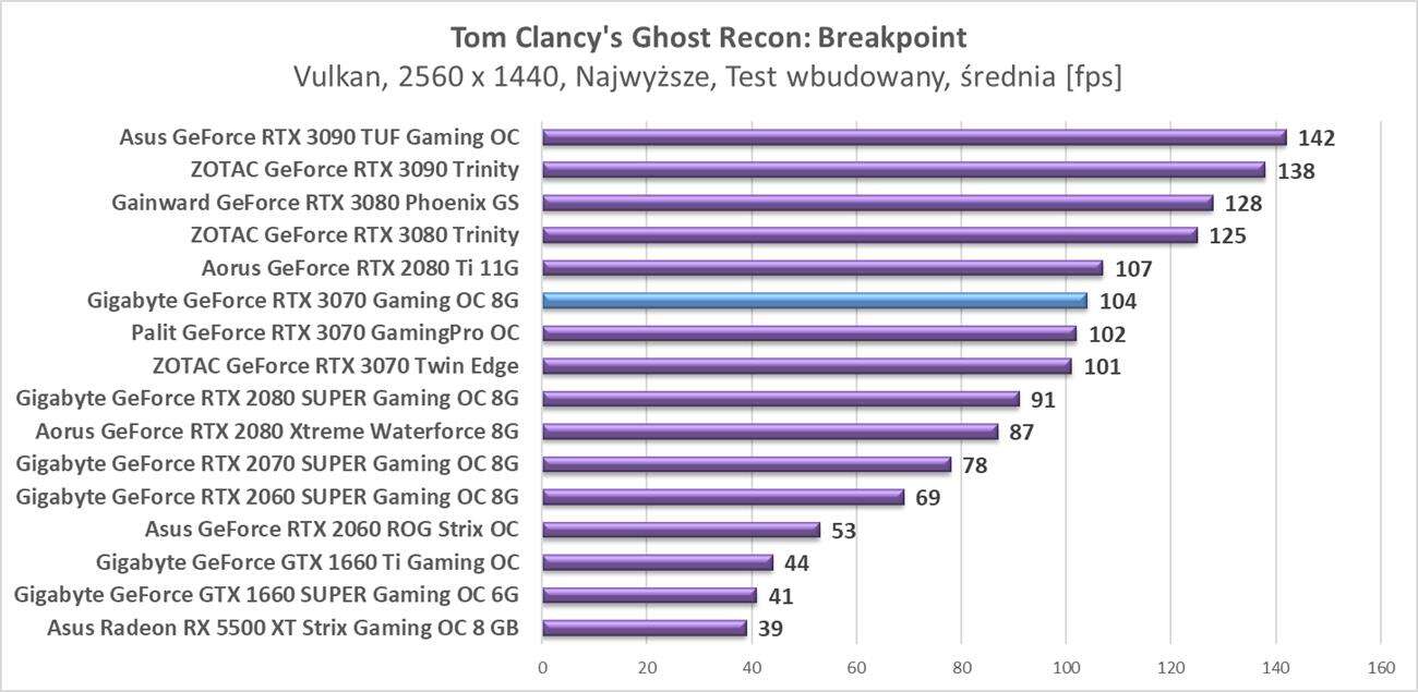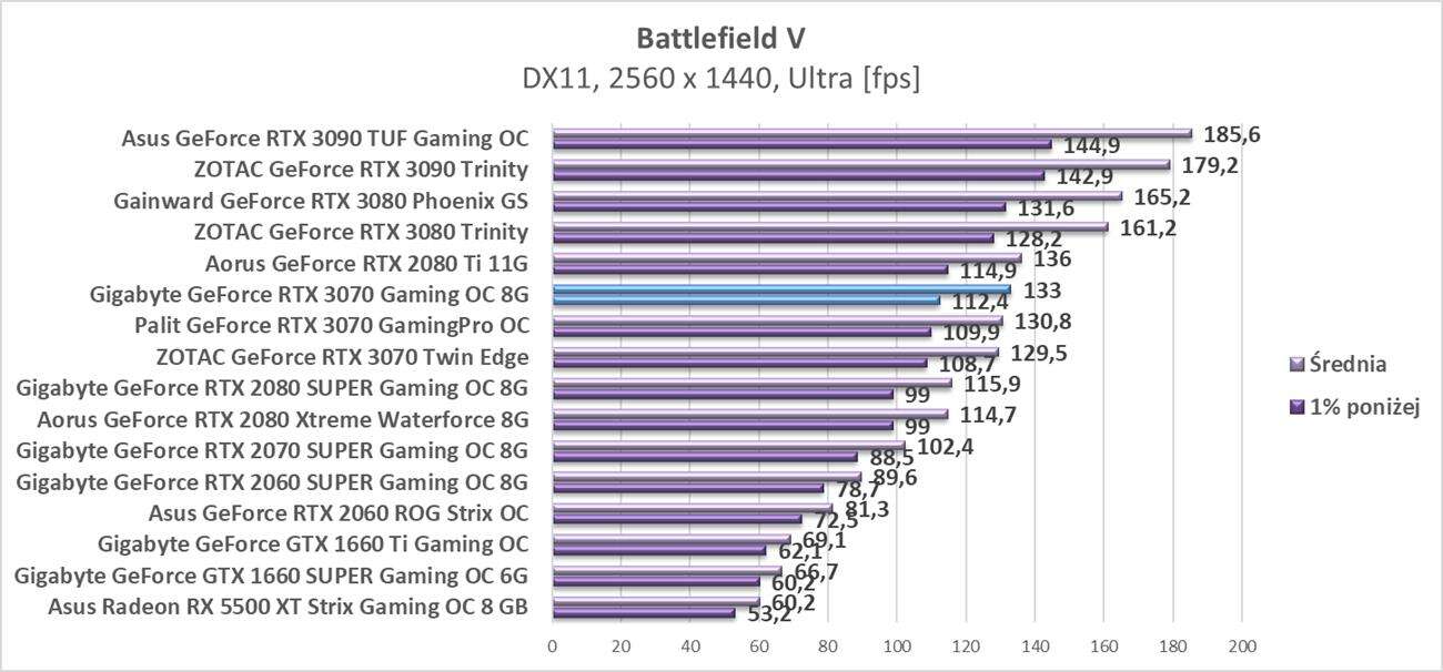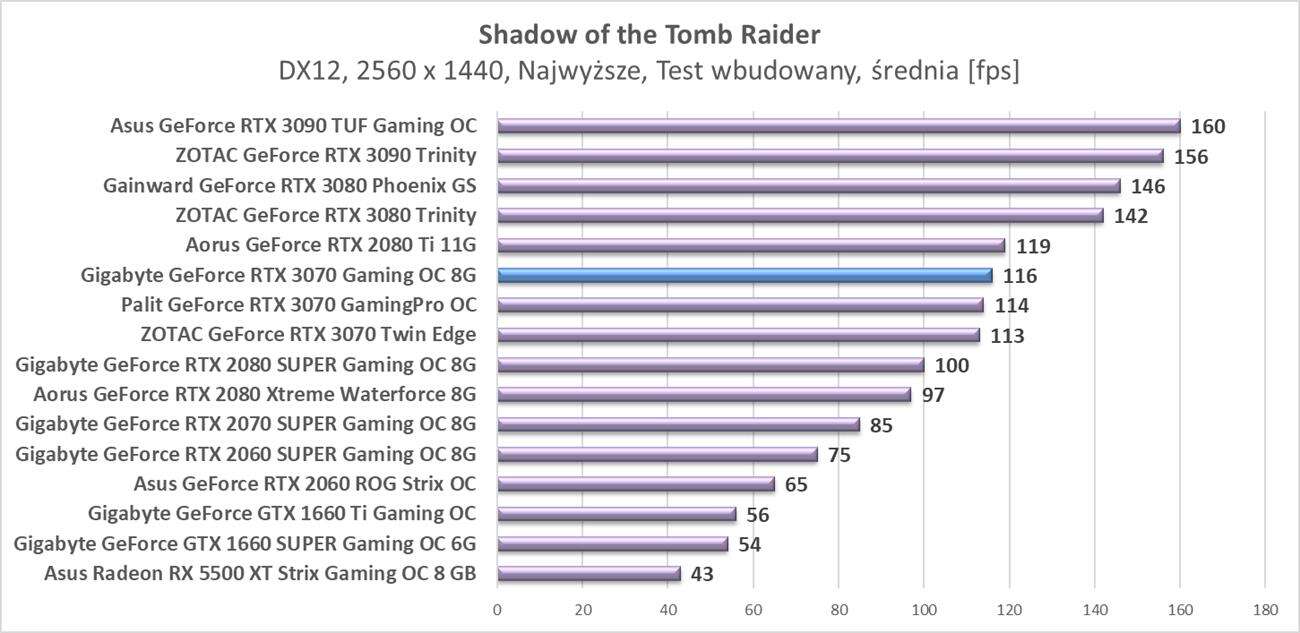 Testy Gigabyte GeForce RTX 3070 Gaming OC 8G w rozdzielczości 2560 x 1440