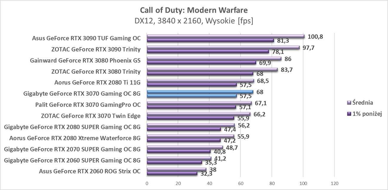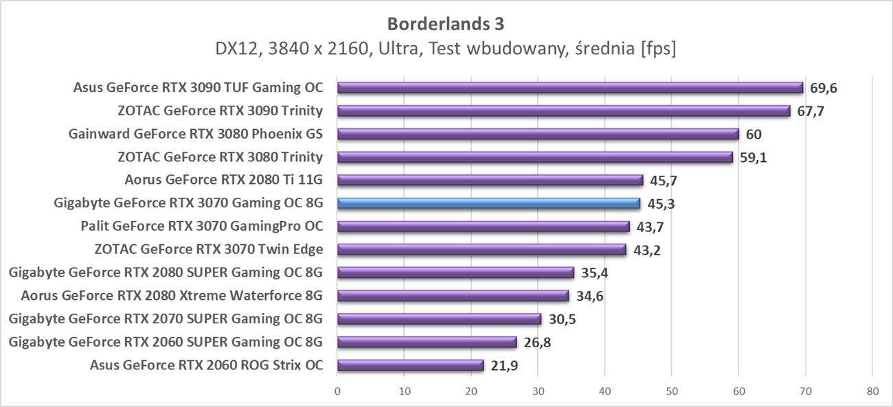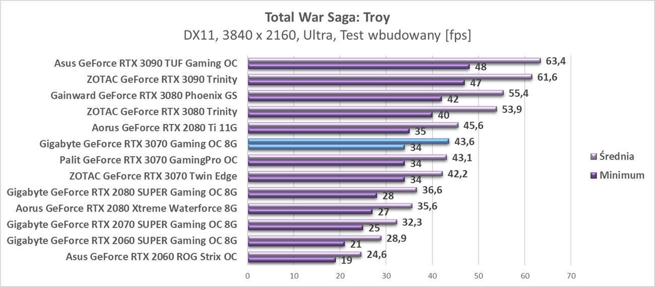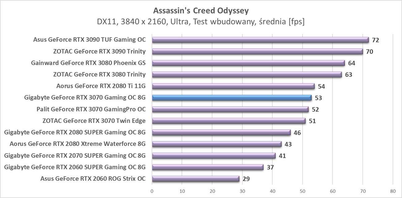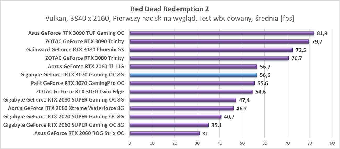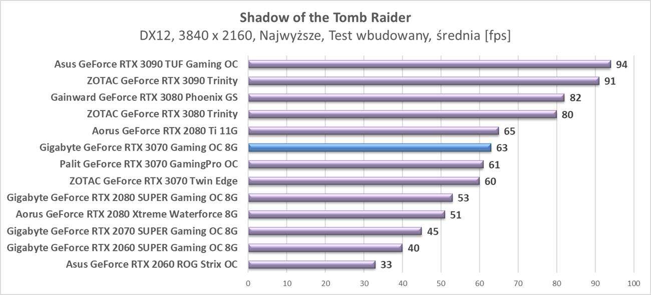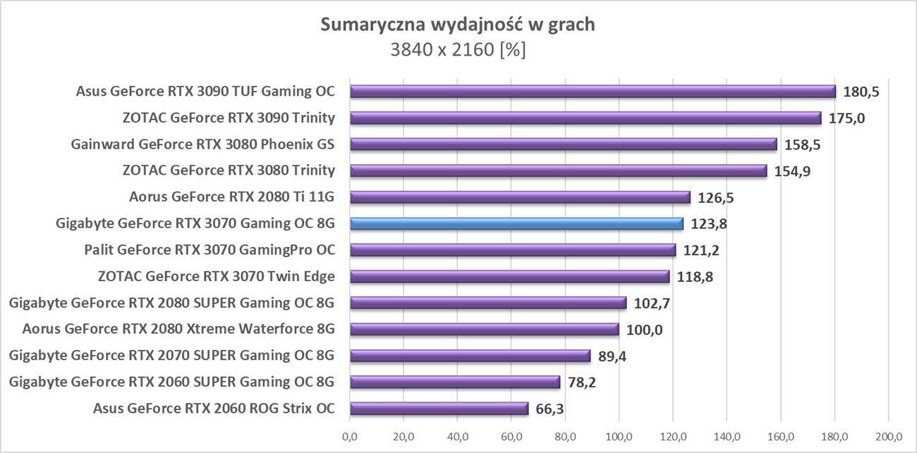 Testy Gigabyte GeForce RTX 3070 Gaming OC 8G w rozdzielczości 3840 x 2160