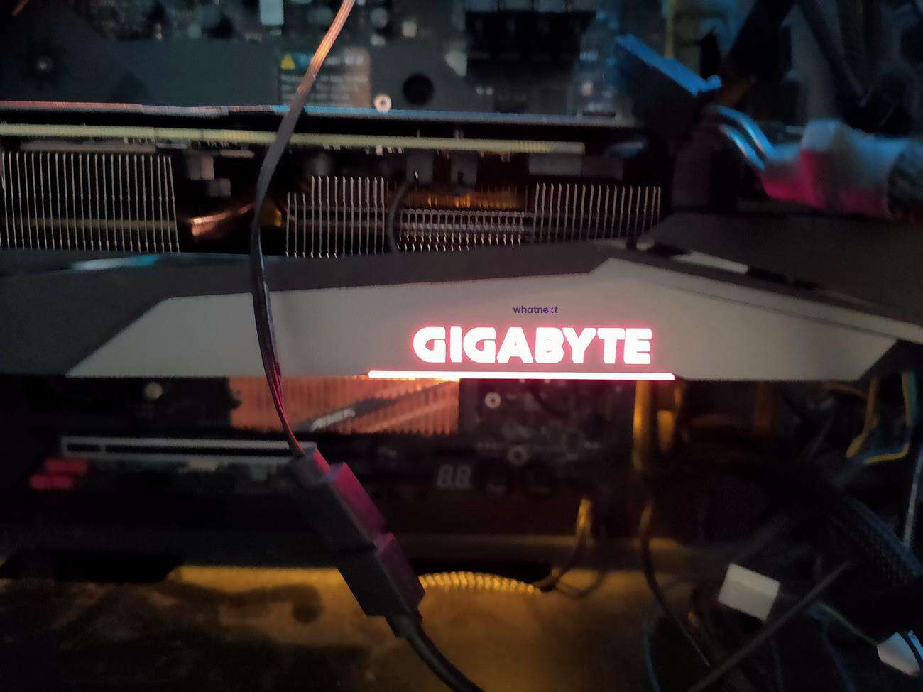 Karta od Gigabyte wygląda podobnie do poprzednich. Jest ona szaro-czarna i ma lekkie podświetlenie RGB loga. W obudowie raczej nie będzie się ona wyróżniała, co można traktować jako plus lub minus. Na pewno jednak ogromną zaletą jest przeniesienie złączy zasilania (6 pin + 8 pin, swoją drogą żadna inna testowana takiej konfiguracji nie miała) na koniec karty. Ułatwi to podłączenie okablowania z zasilacza, co również jest jedynym takim rozwiązaniem w kartach, jakie miałem w rękach. Warto też wspomnieć o metalowym backplate.