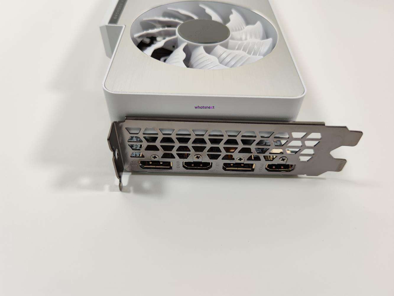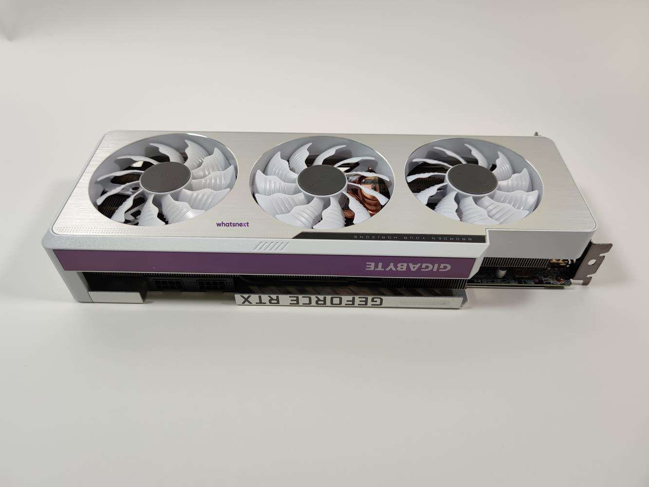 W samym pudełku nie ma zbytnio nic ciekawego, więc może od razu przejdę do karty. Prezentuje się ona znakomicie. Uważam, że w dopasowanych kolorystycznie zestawach będzie naprawdę świetnie wyglądała. Z boku jest podświetlane logo firmy oraz fioletowy pasek, który znakomicie kompunuje się z resztą. Jeśli budujecie biały komputer to zdecydowanie możecie postawić na ten model karty.