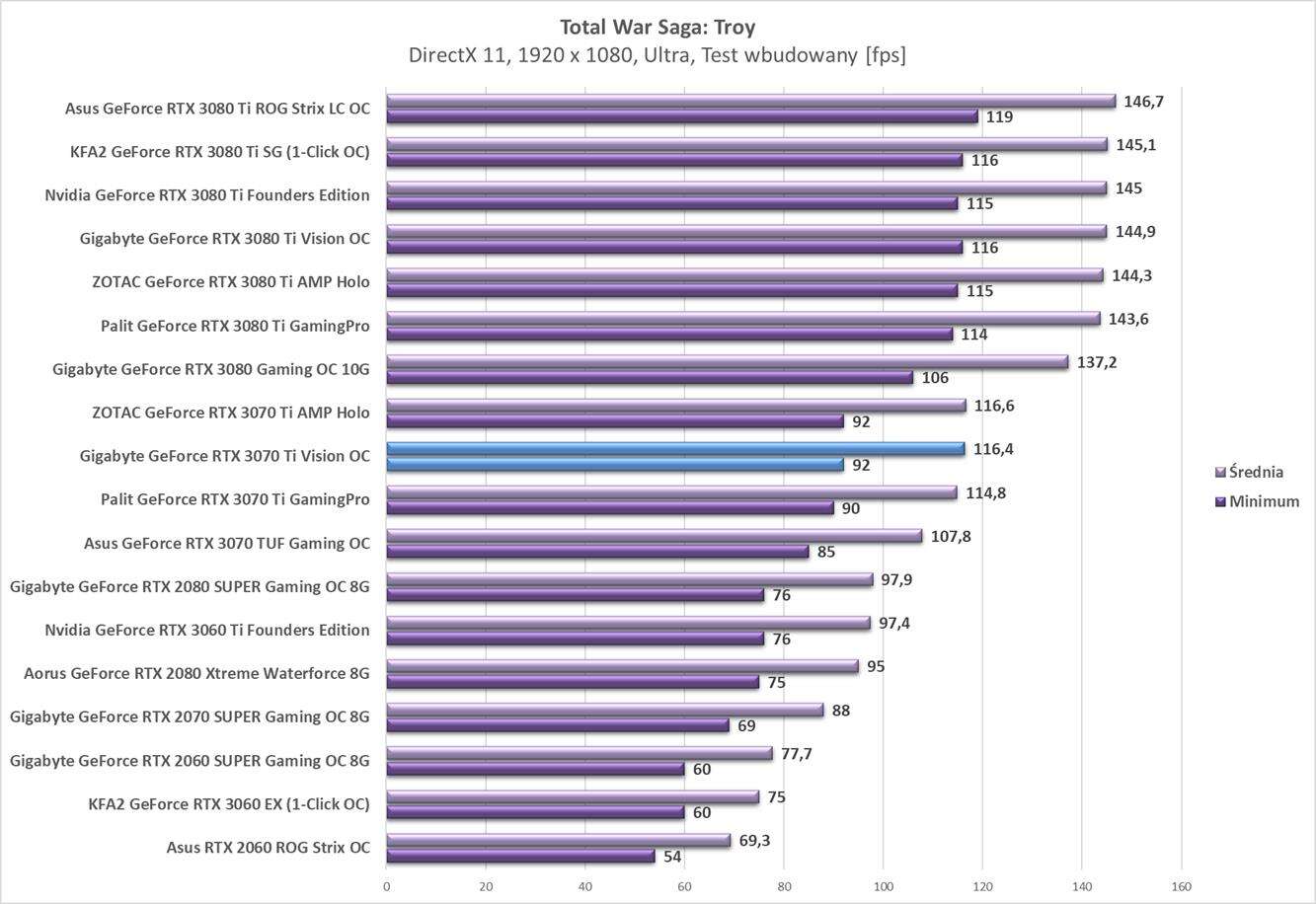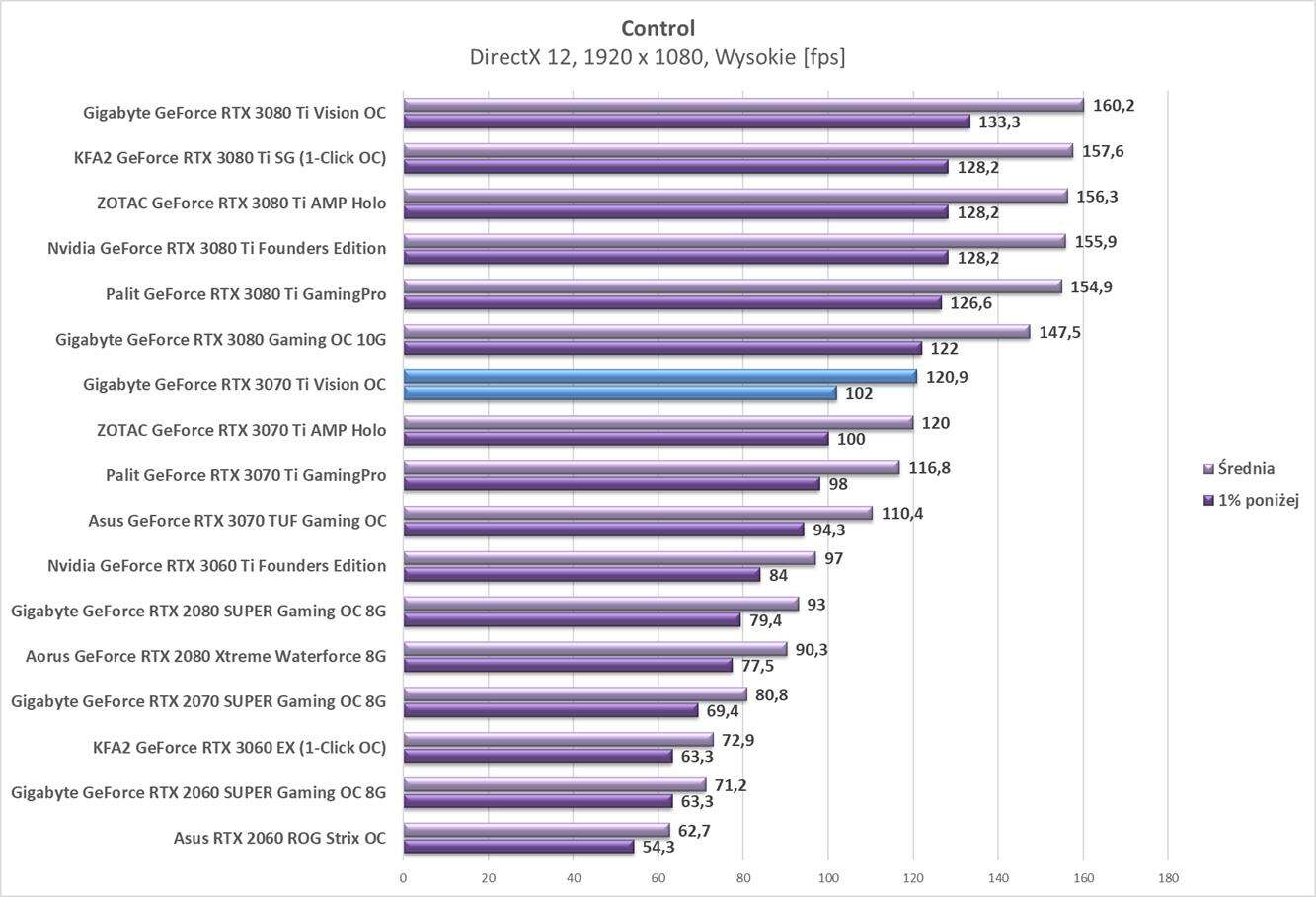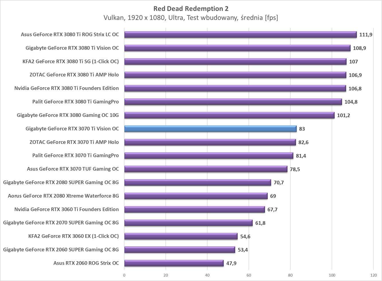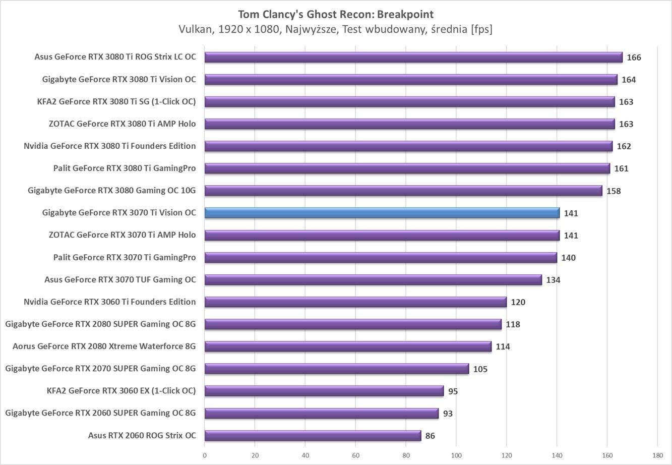 Testy Gigabyte GeForce RTX 3070 Ti Vision OC w rozdzielczości 1920 x 1080