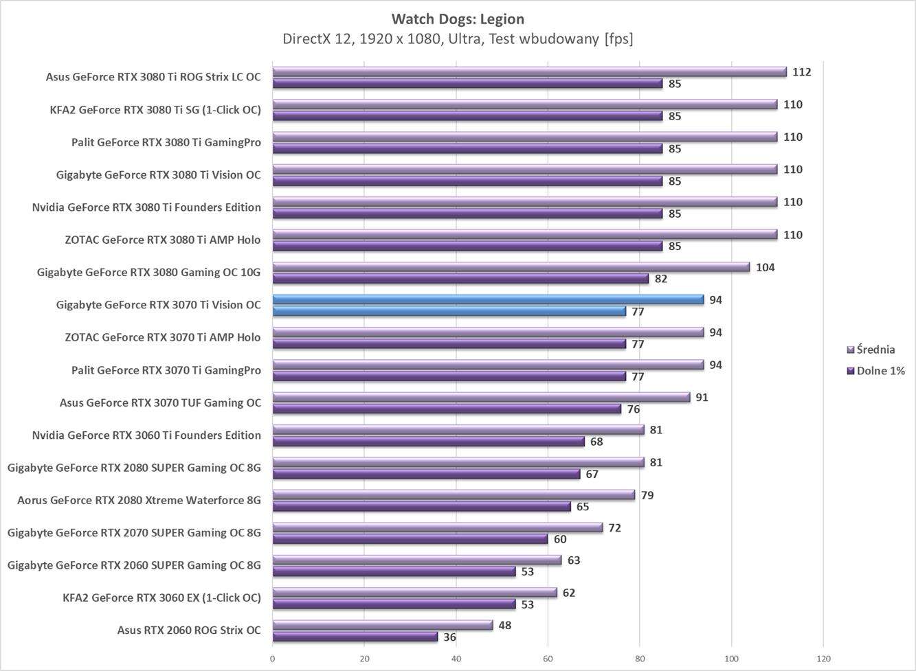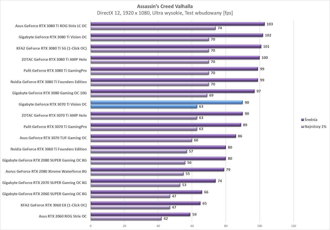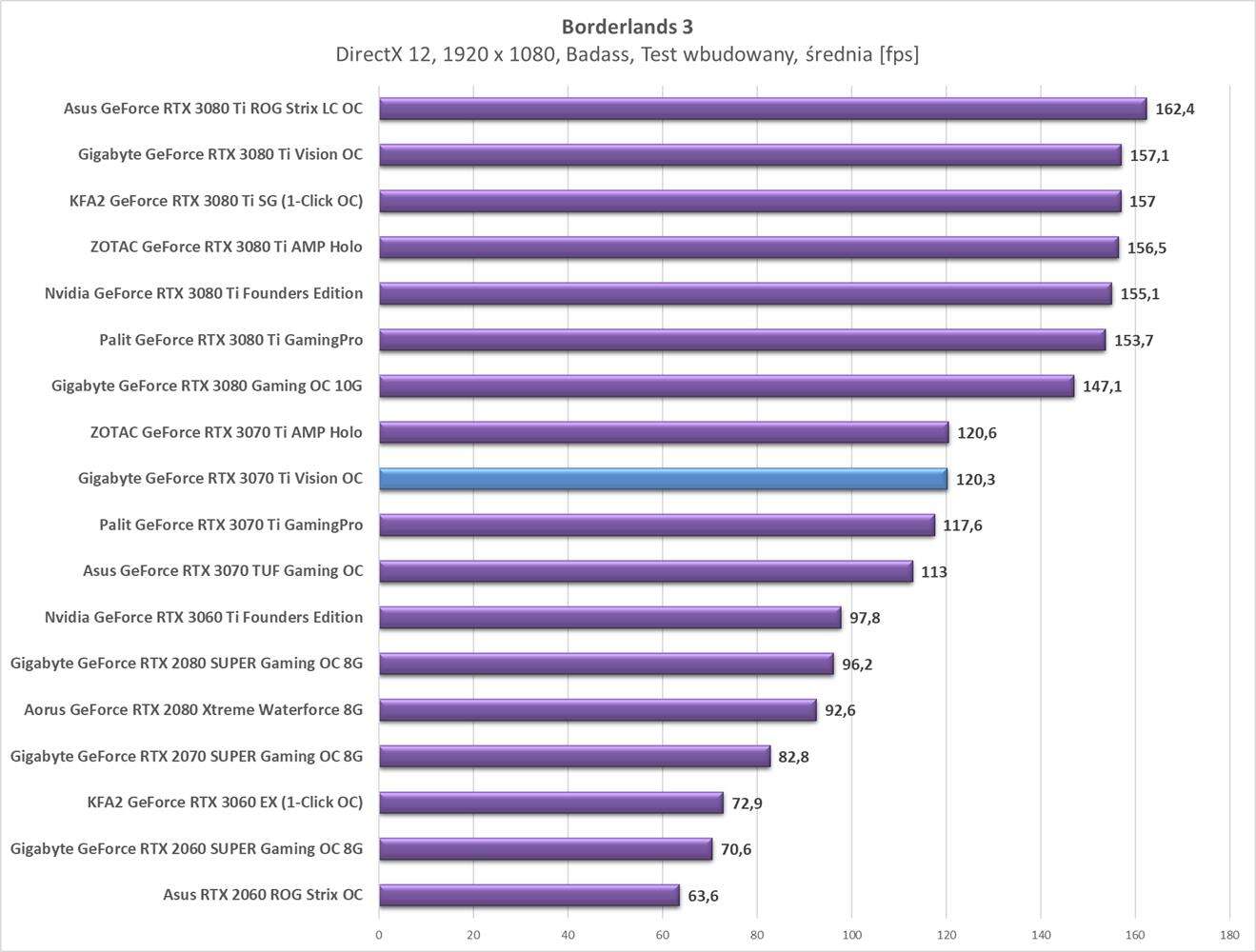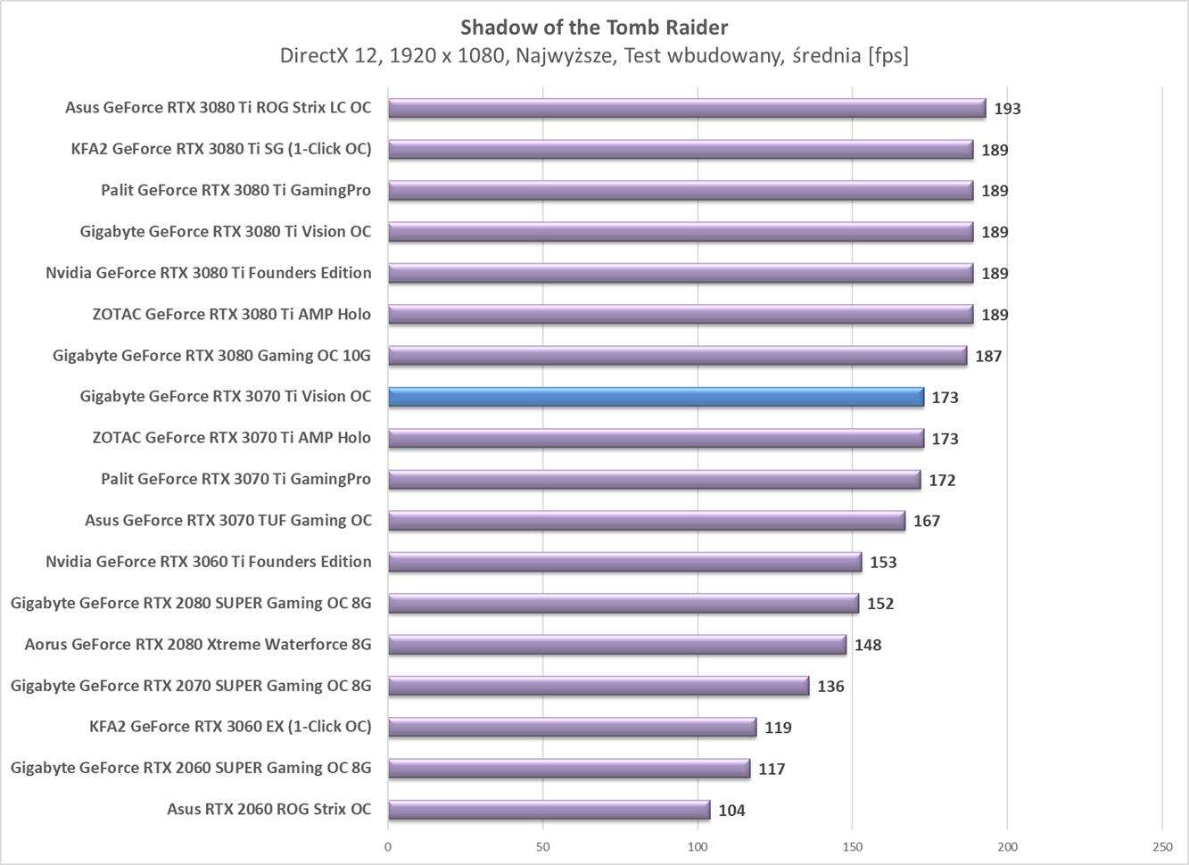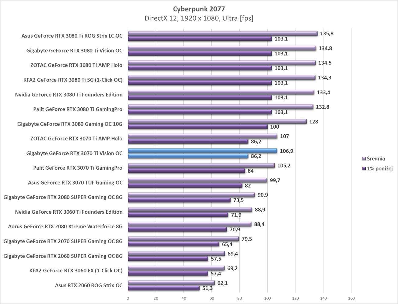 Testy Gigabyte GeForce RTX 3070 Ti Vision OC w rozdzielczości 1920 x 1080
