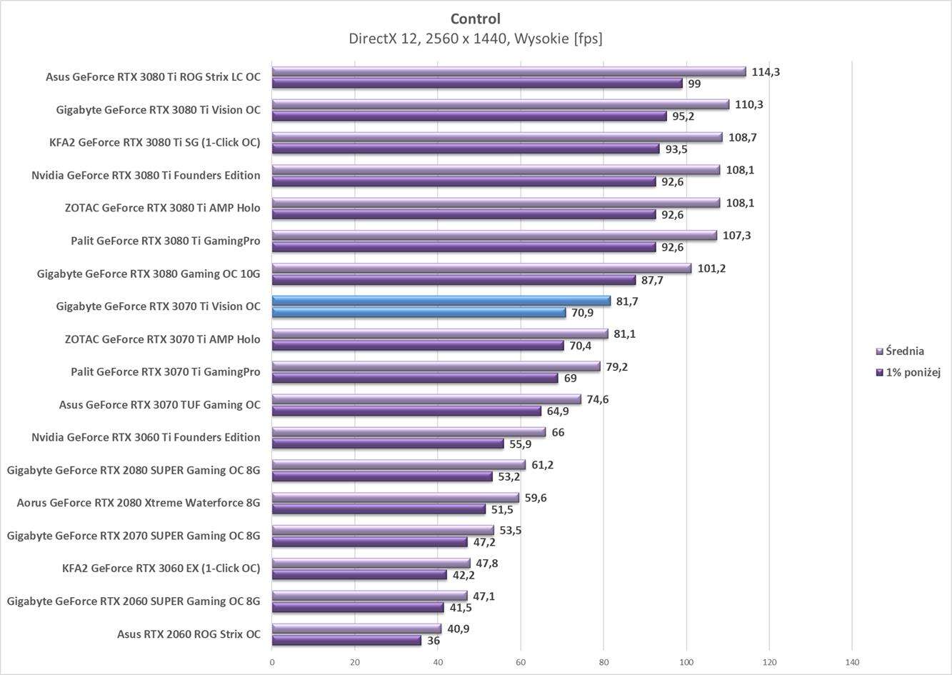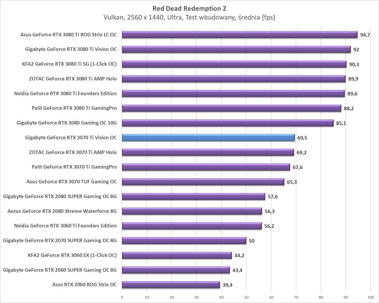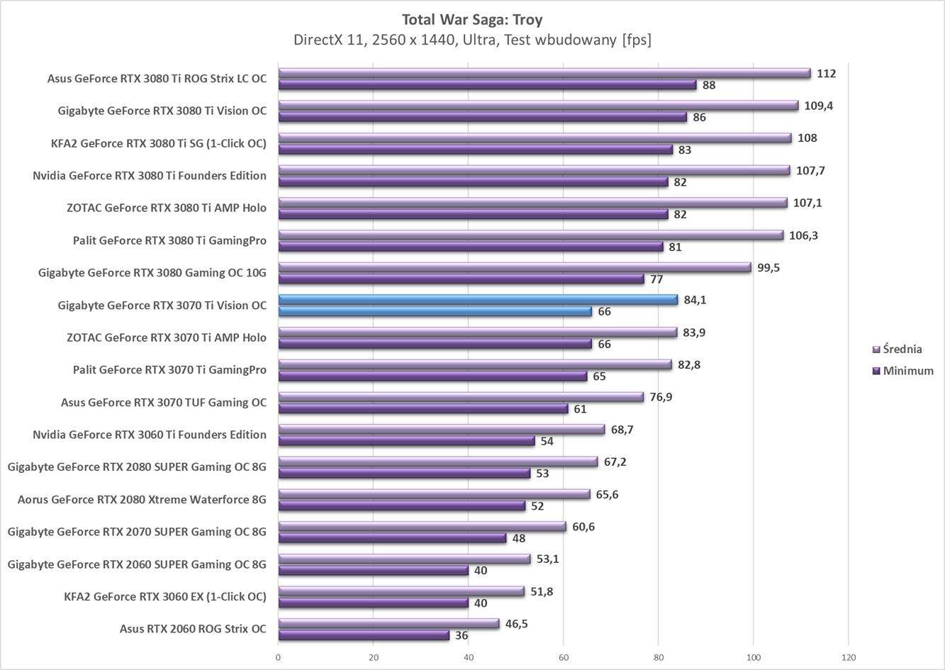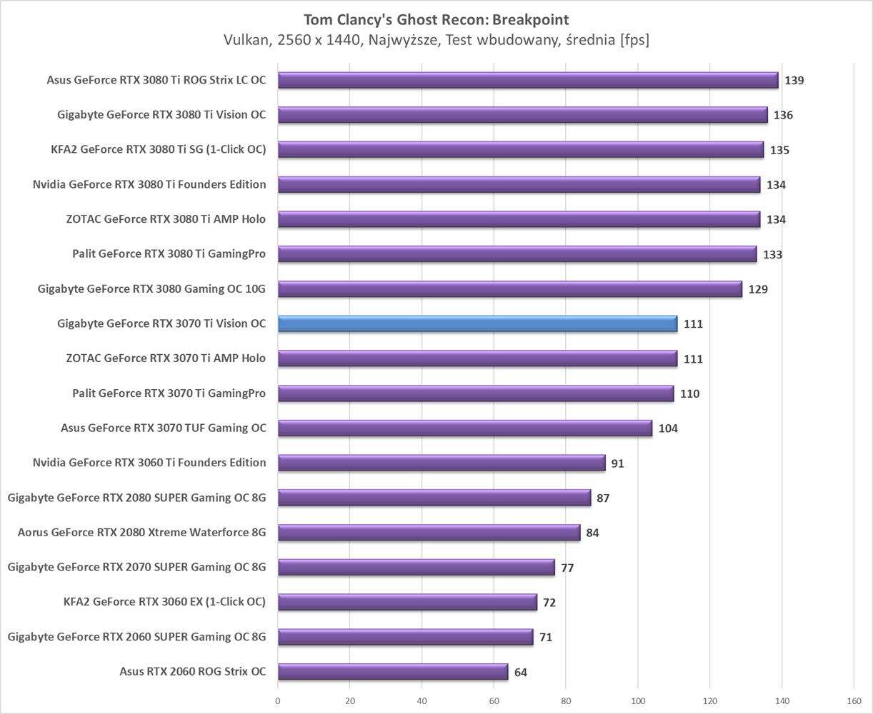 Testy Gigabyte GeForce RTX 3070 Ti Vision OC w rozdzielczości 2560 x 1440