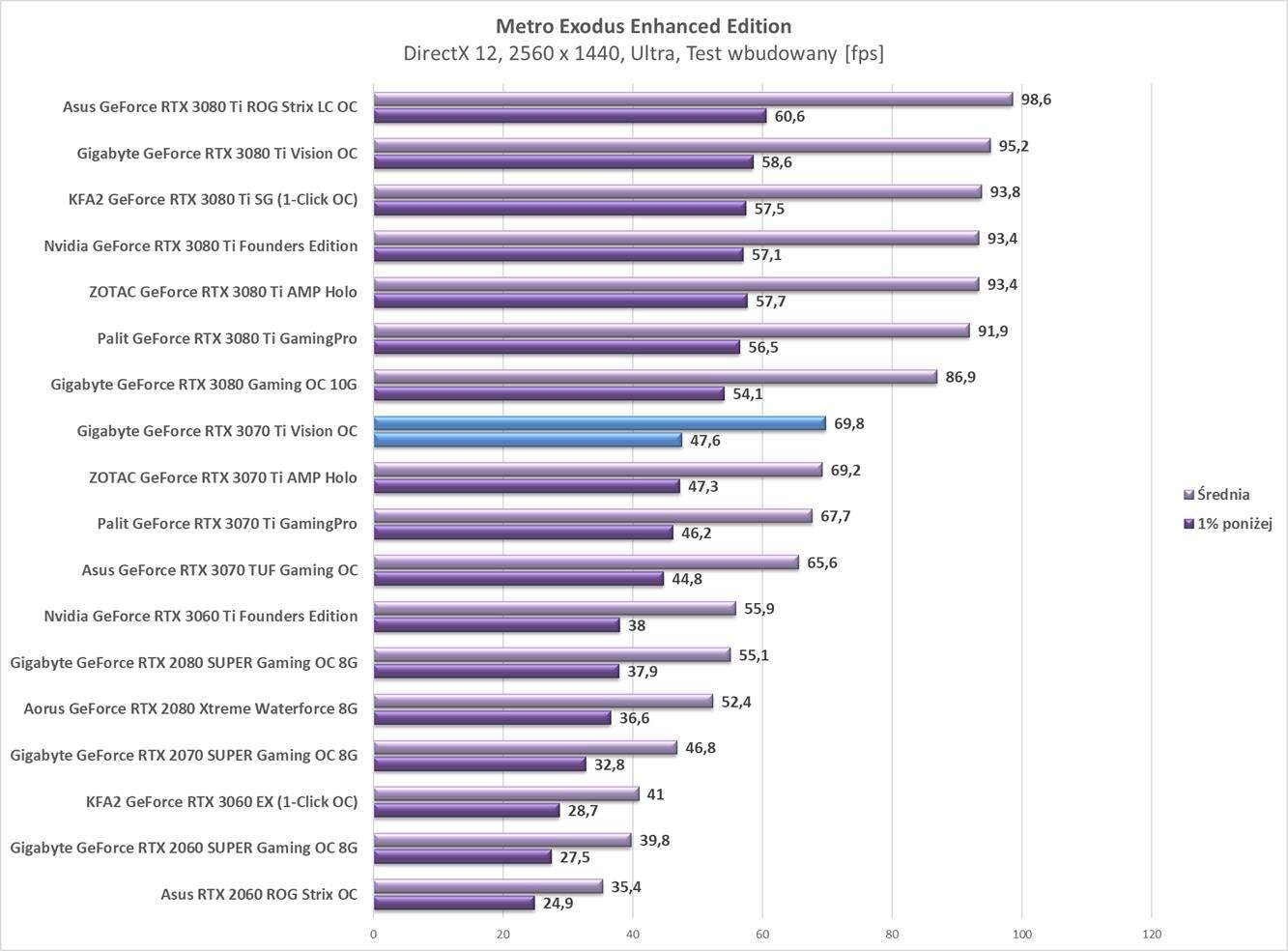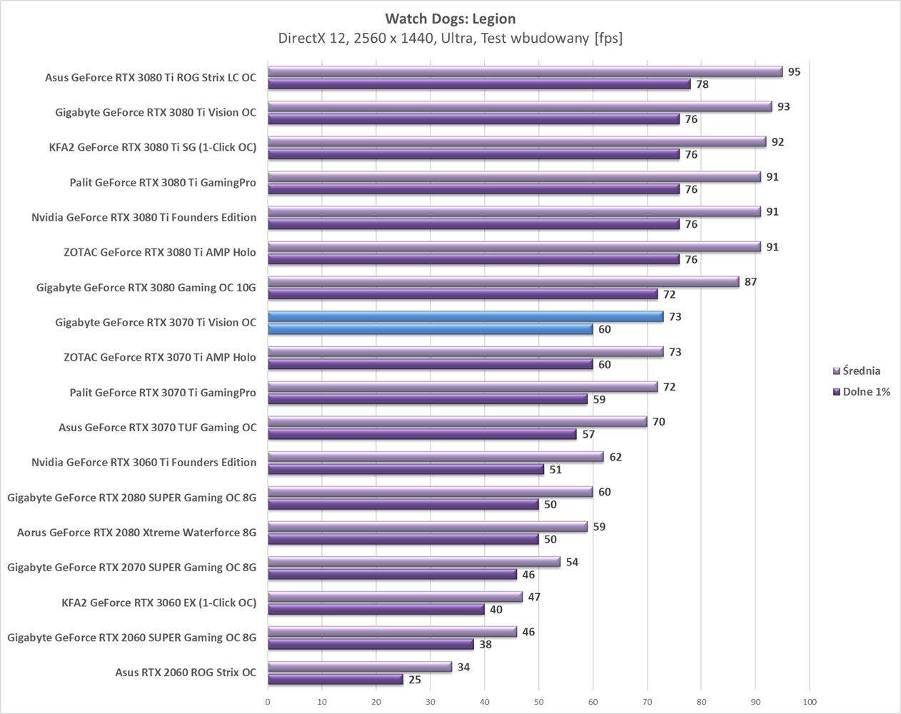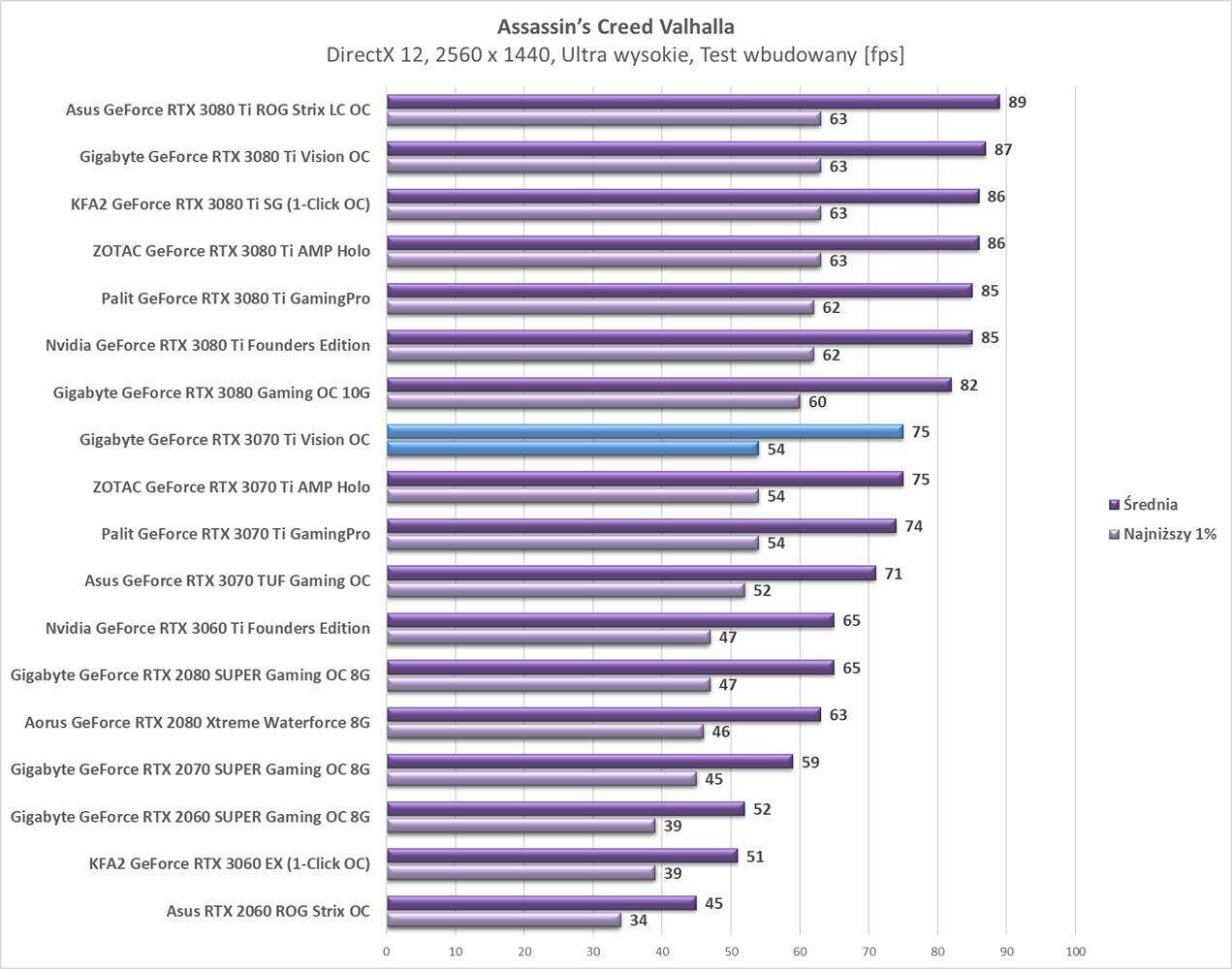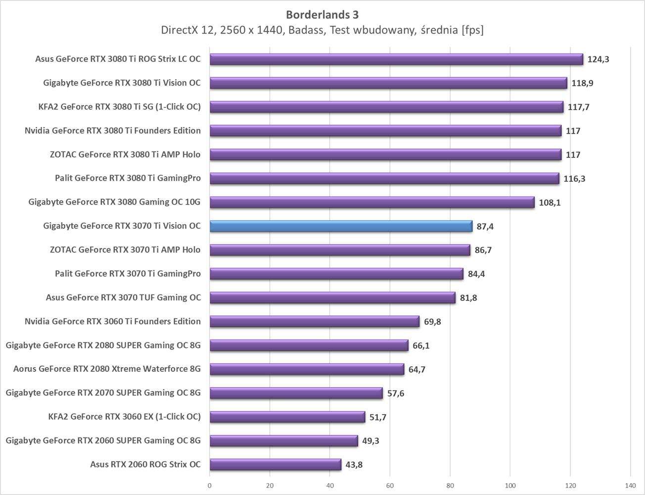 Testy Gigabyte GeForce RTX 3070 Ti Vision OC w rozdzielczości 2560 x 1440