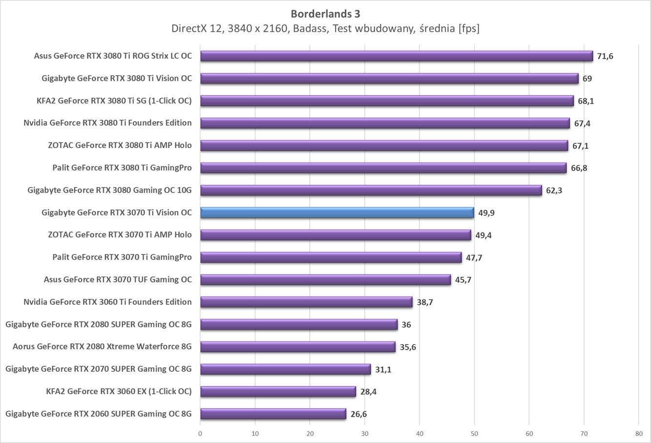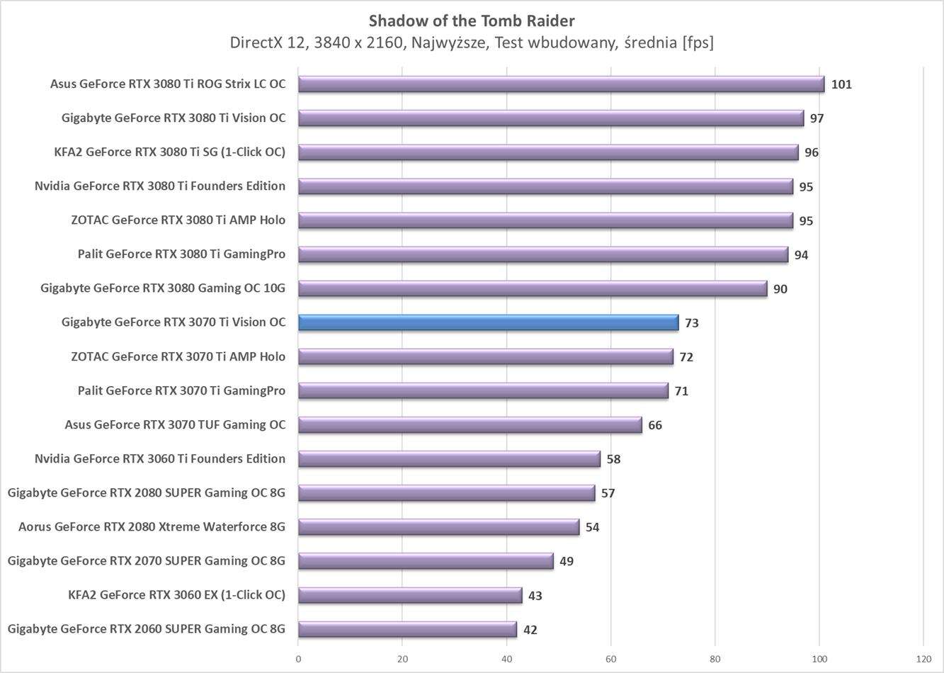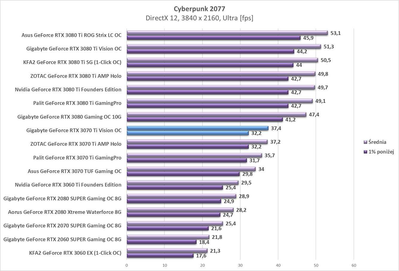 Testy Gigabyte GeForce RTX 3070 Ti Vision OC w rozdzielczości 3840 x 2160