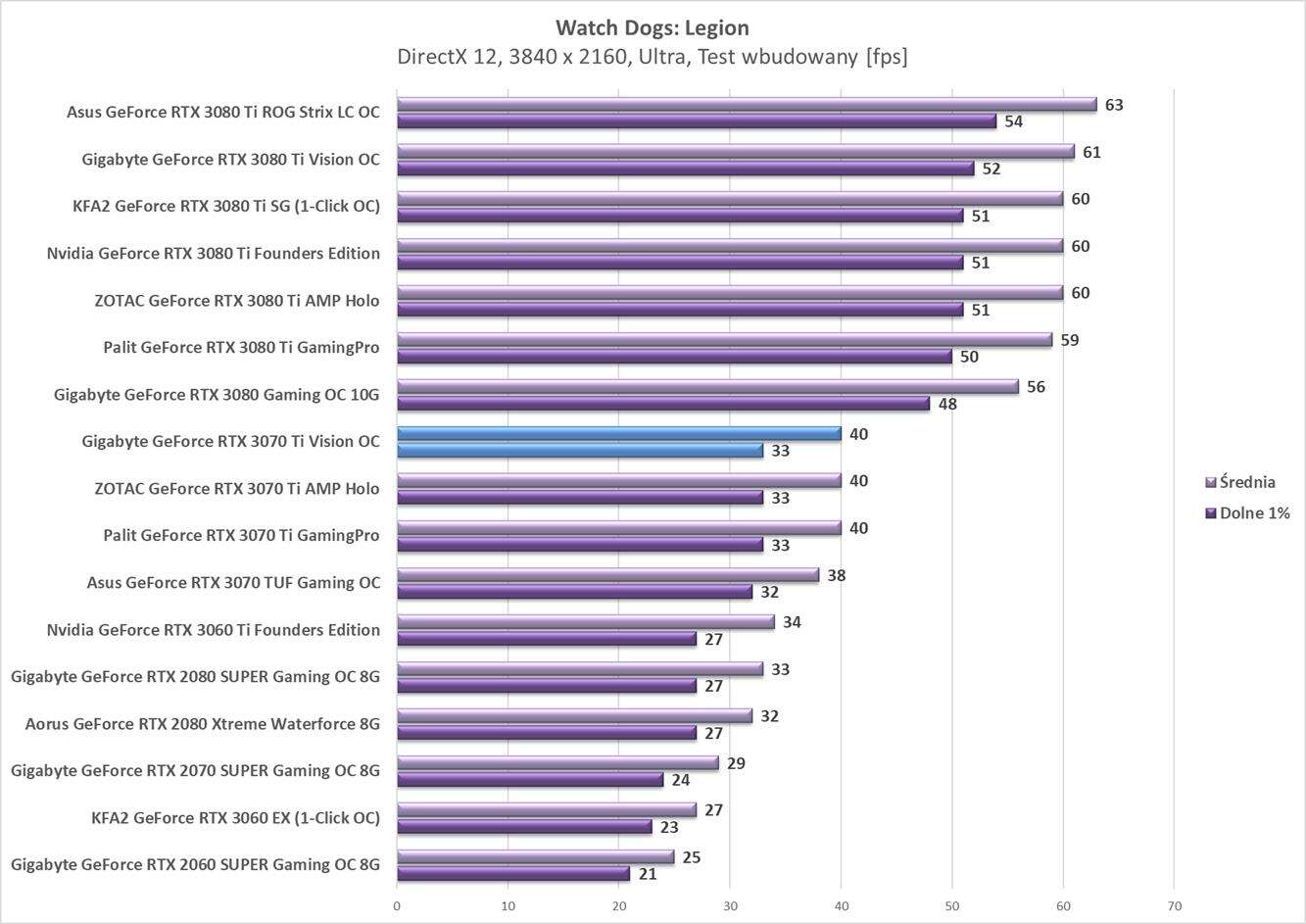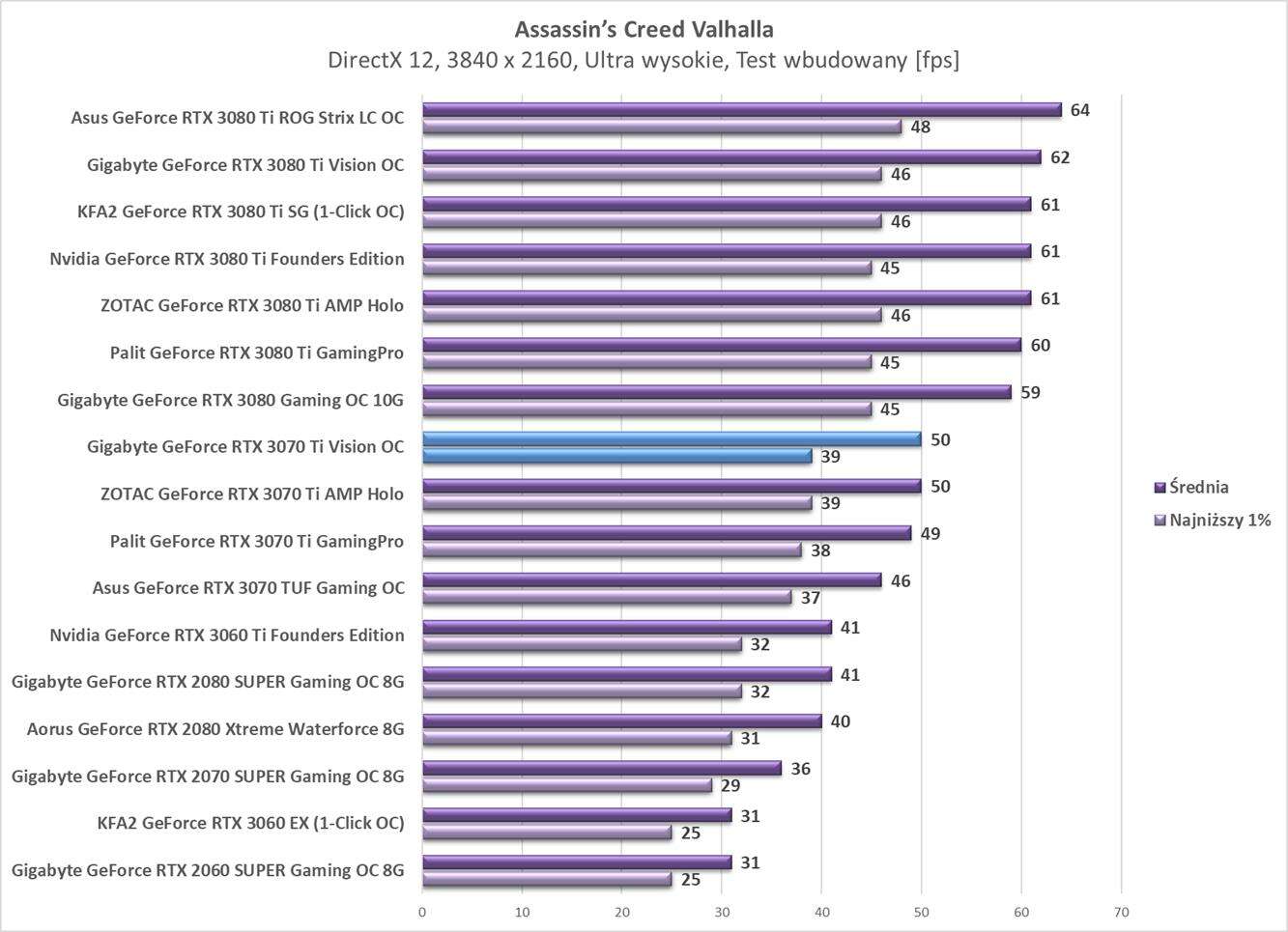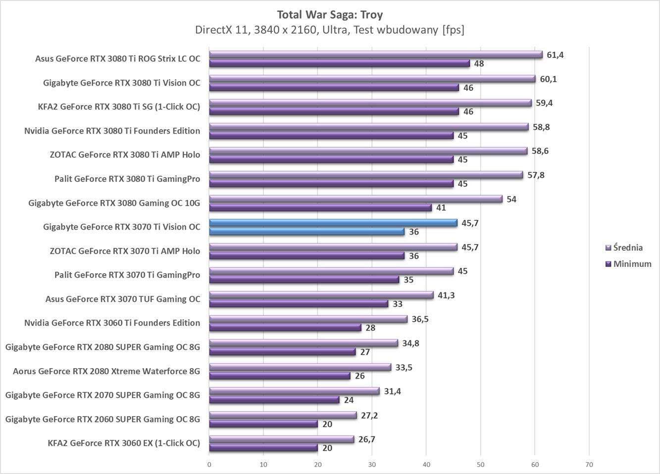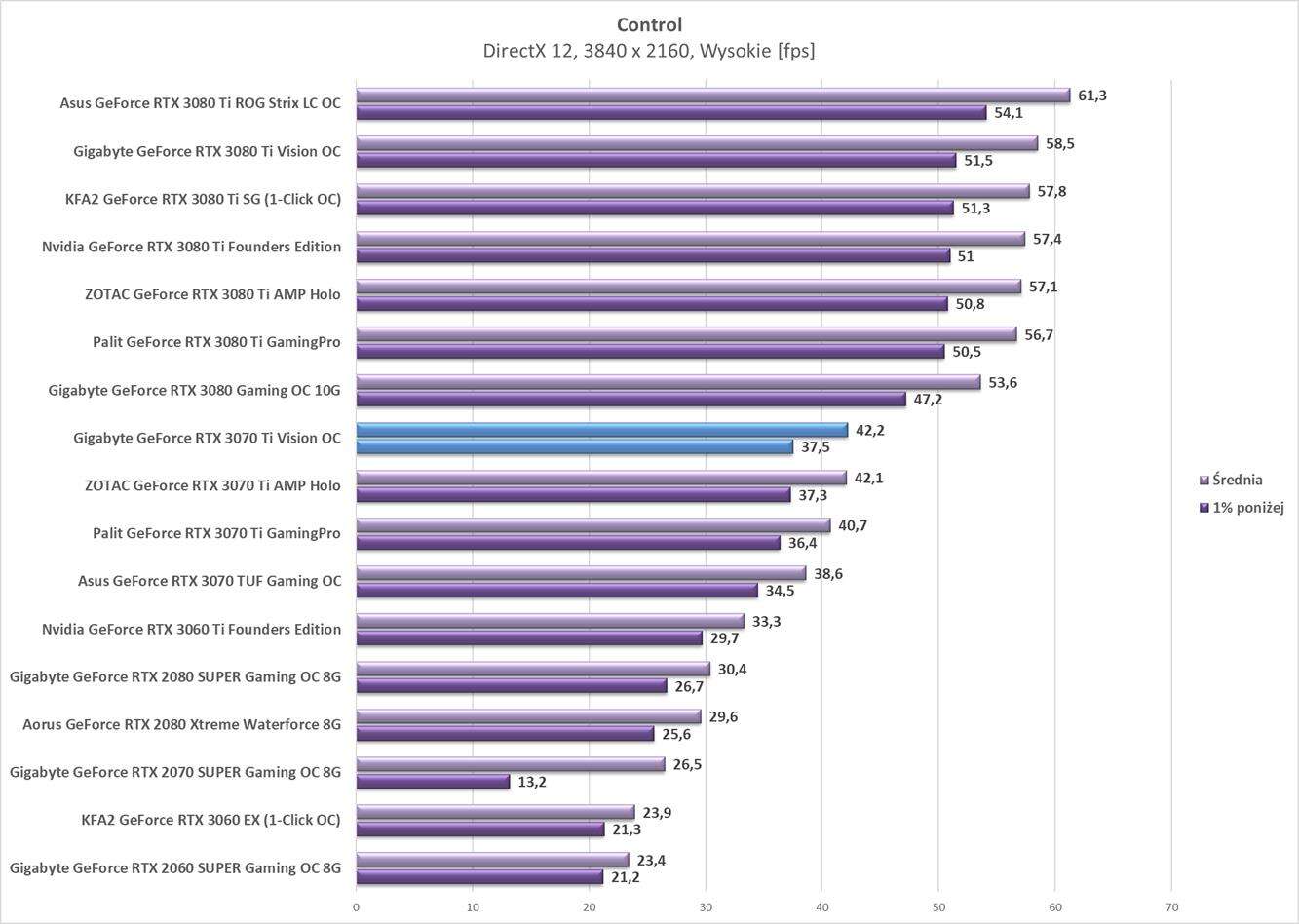 Testy Gigabyte GeForce RTX 3070 Ti Vision OC w rozdzielczości 3840 x 2160