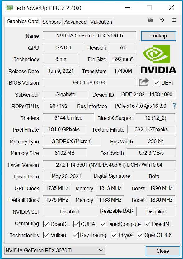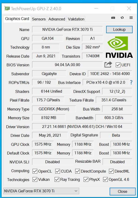 - RTX 3070 Ti: Nvidia Game Ready 466.61
