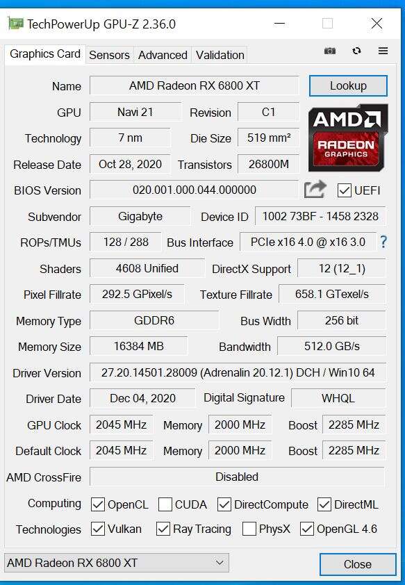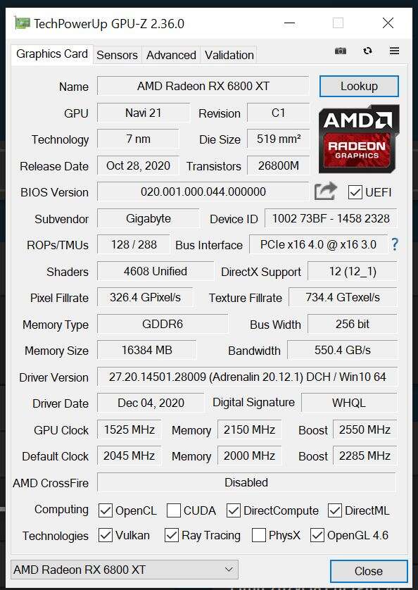 - RX 6800 XT: AMD 20.12.1