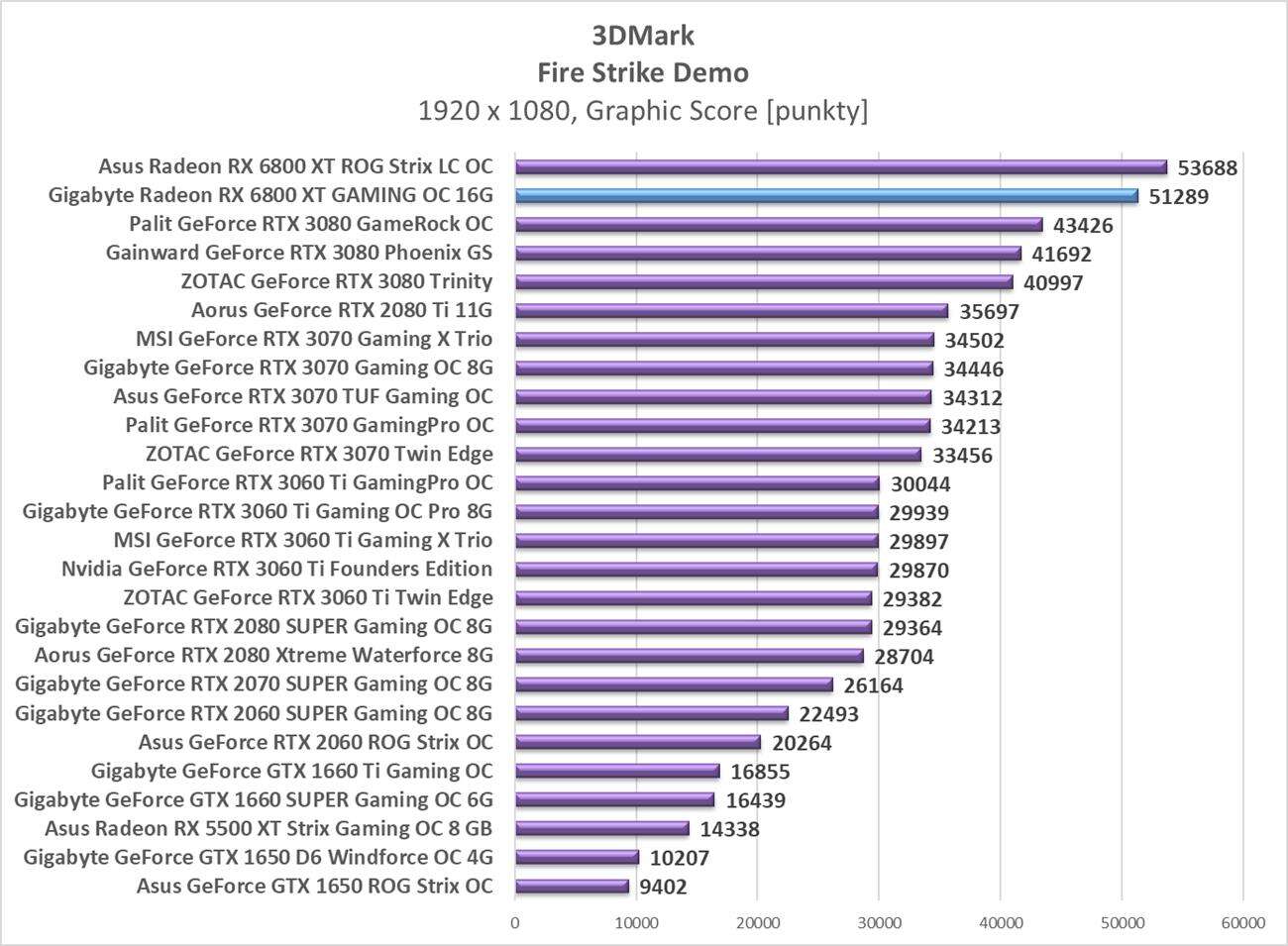 Sumaryczna wydajność Gigabyte Radeon RX 6800 XT Gaming OC 16G