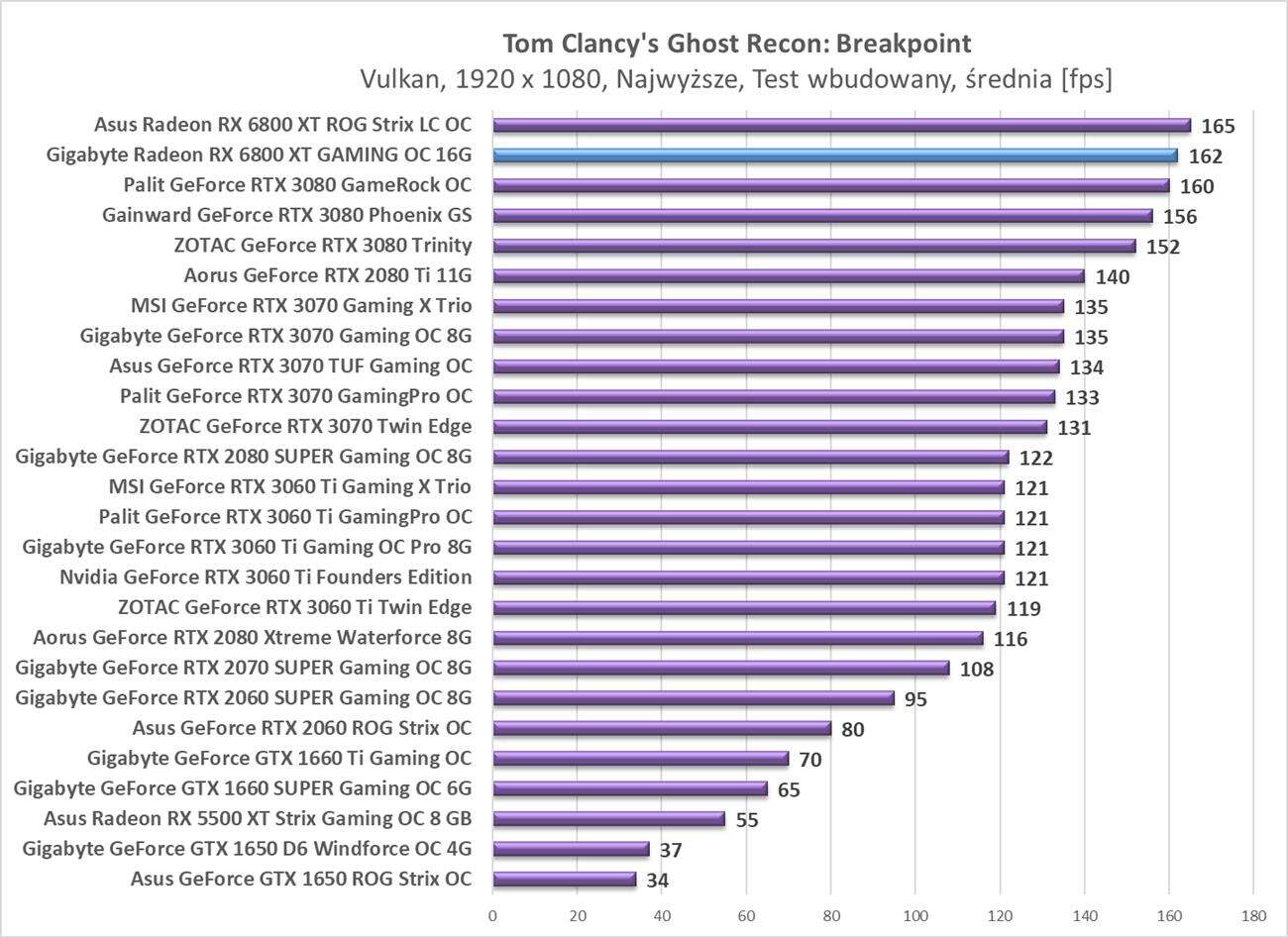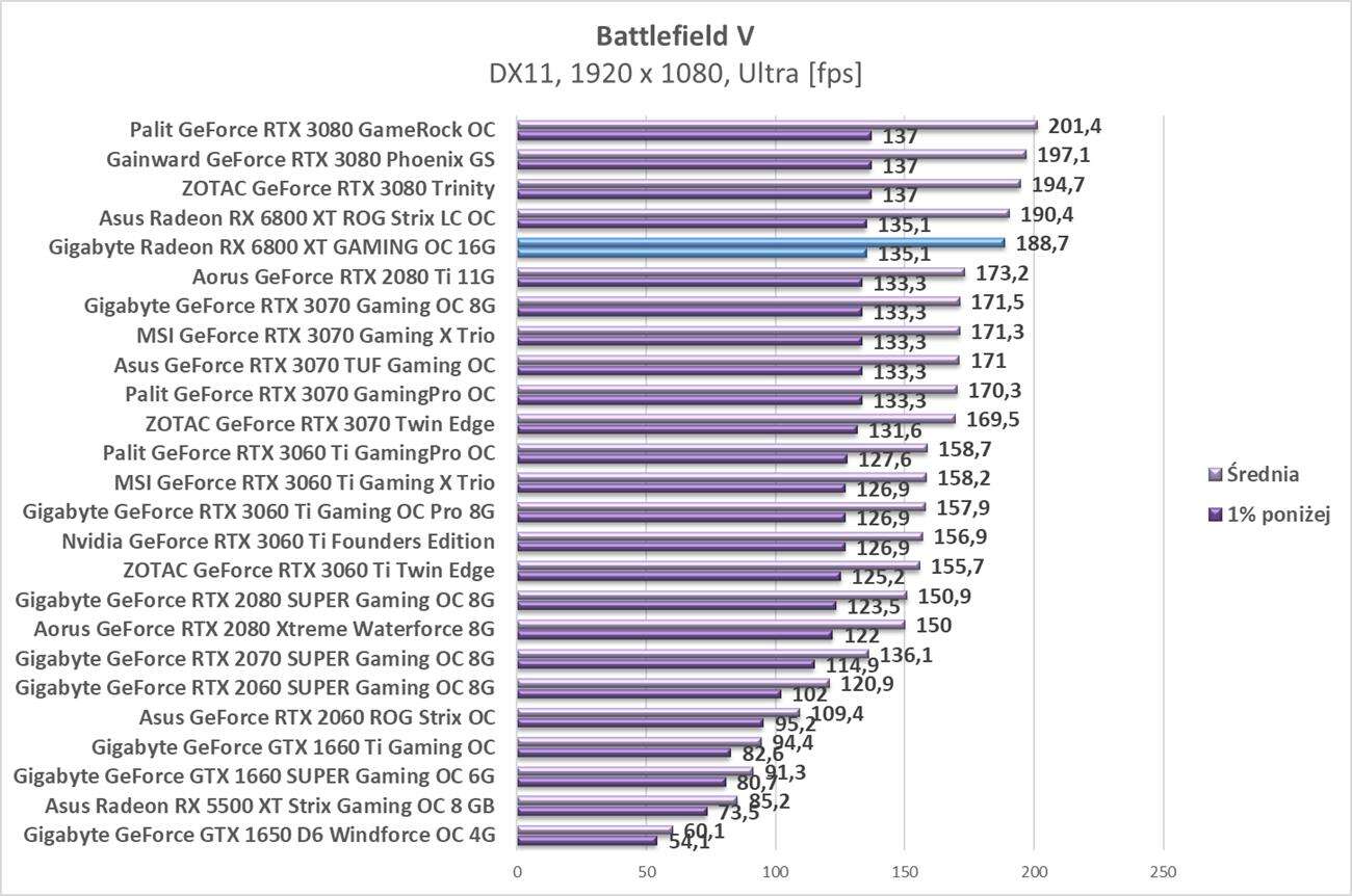 Testy Gigabyte Radeon RX 6800 XT Gaming OC 16G w rozdzielczości 1920 x 1080