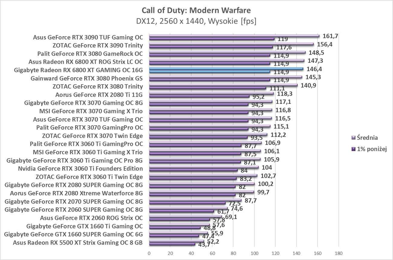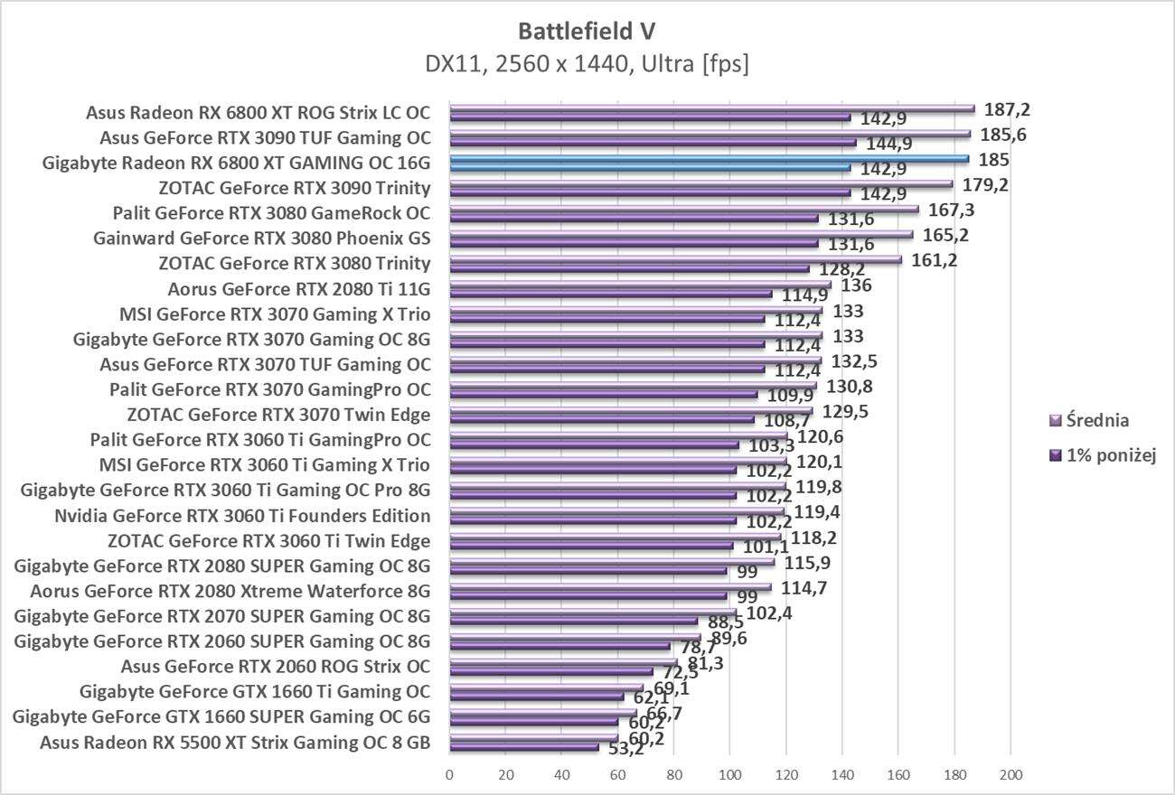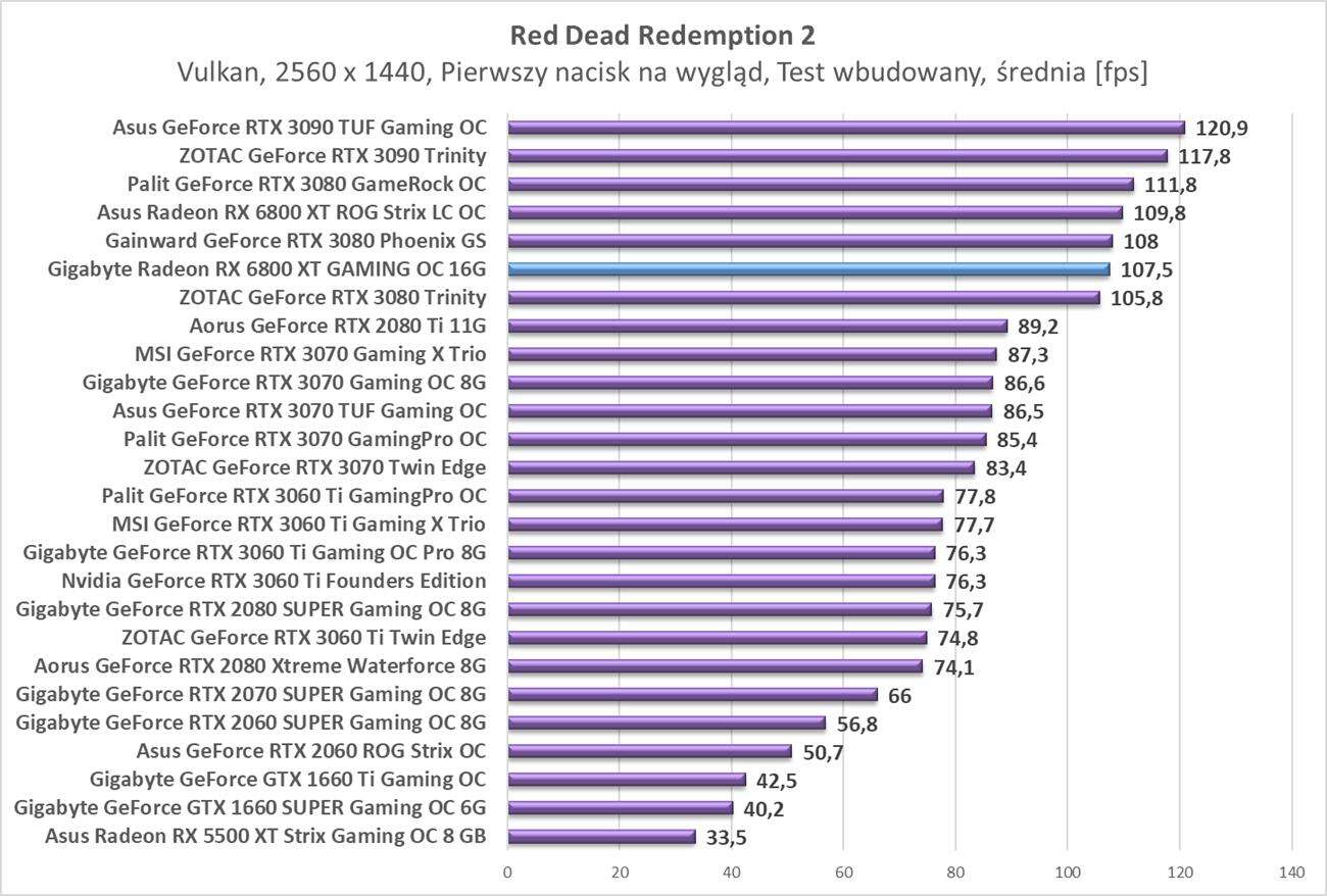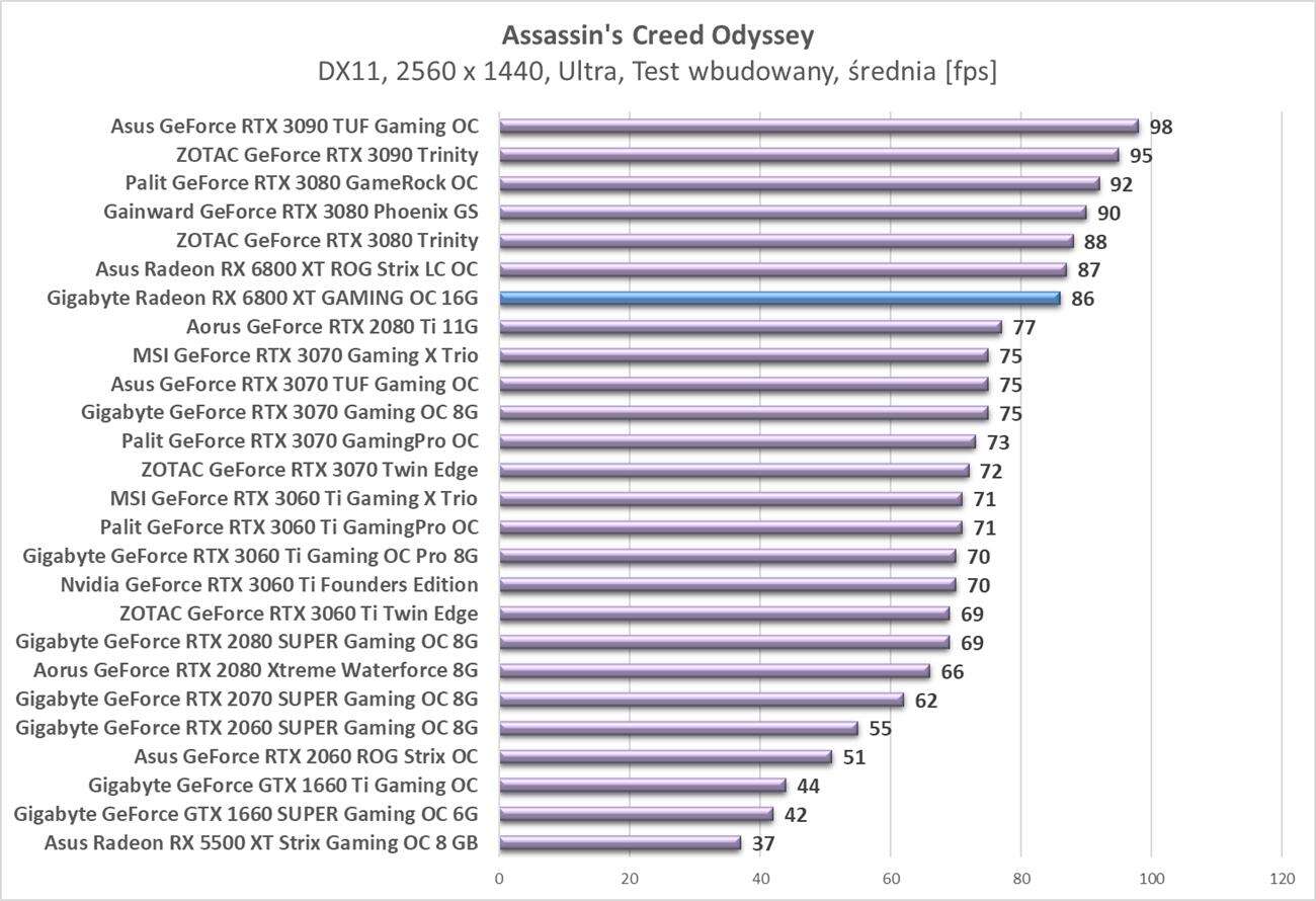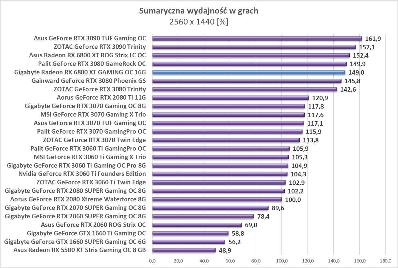 Testy Gigabyte Radeon RX 6800 XT Gaming OC 16G w rozdzielczości 2560 x 1440
