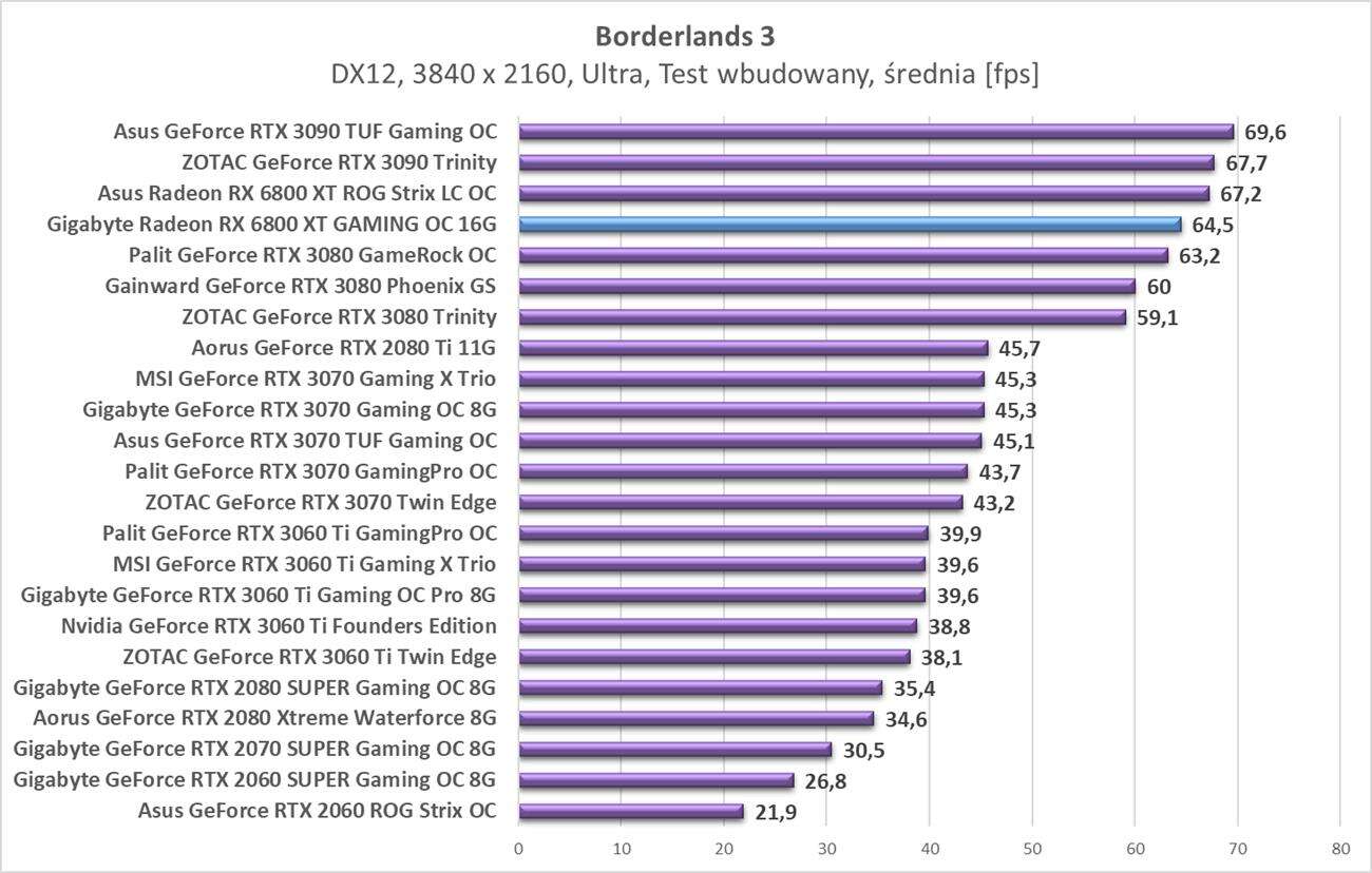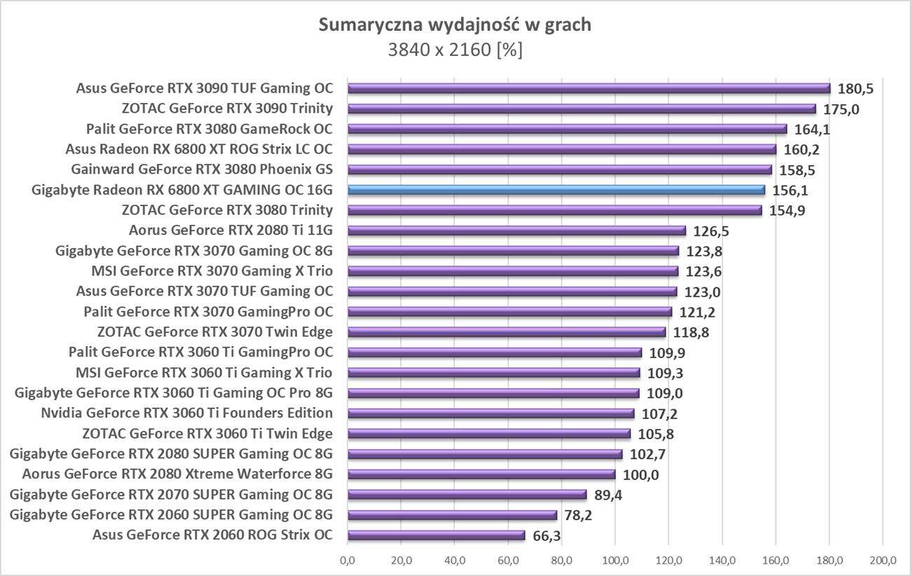 Testy Gigabyte Radeon RX 6800 XT Gaming OC 16G w rozdzielczości 3840 x 2160