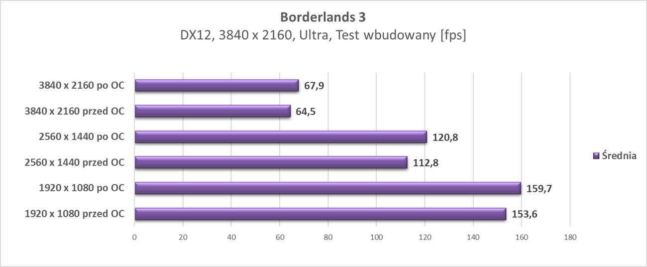 W rozdzielczości 2560 x 1440 px również możecie liczyć na w pełni płynną rozgrywkę. W każdym z tytułów karta notuje powyżej 60 fps, więc jest znakomicie.