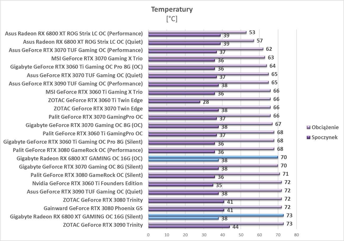 Temperatury, głośność, pobór mocy Gigabyte Radeon RX 6800 XT Gaming OC 16G