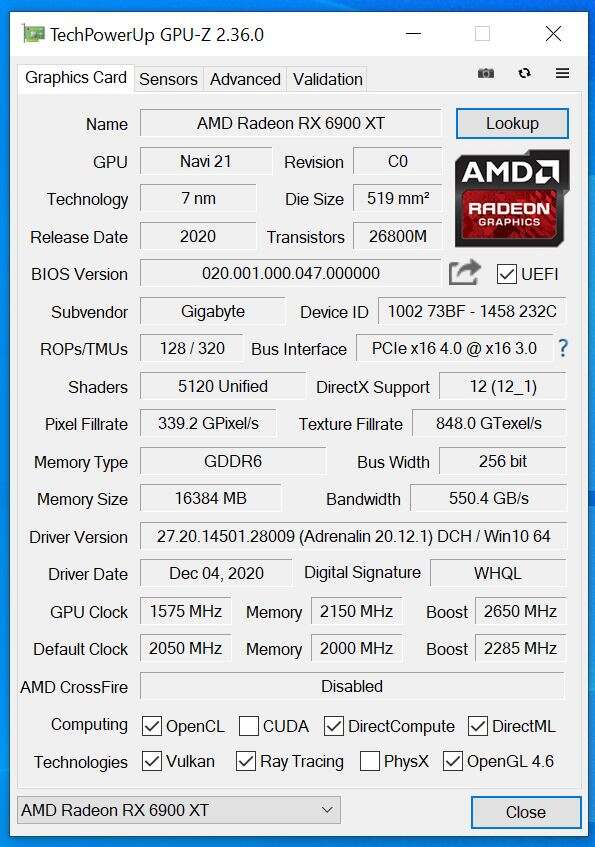 Test Gigabyte Radeon RX 6900 XT Gaming OC 16G