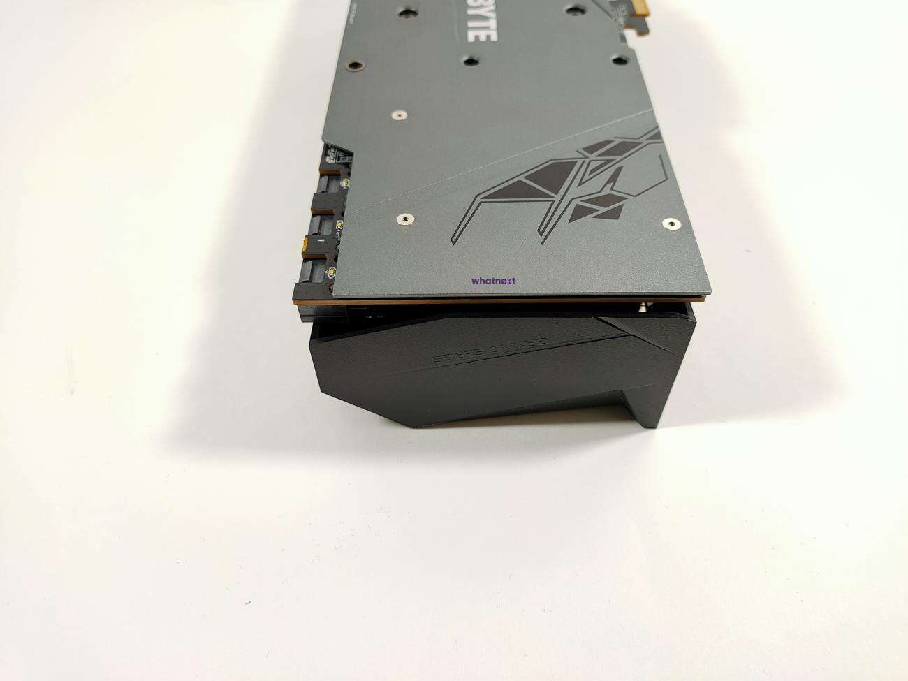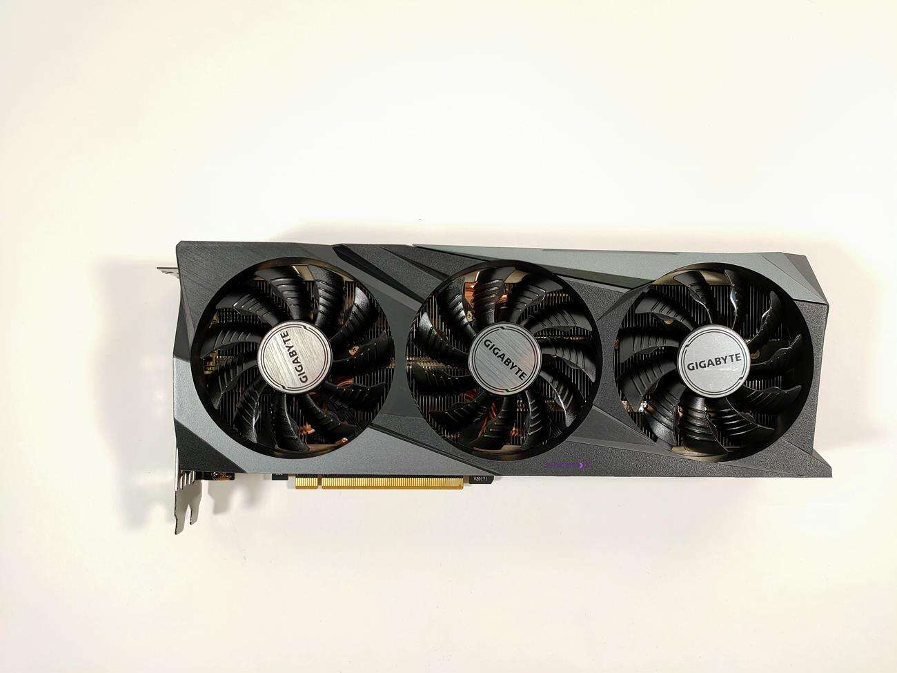 Za chłodzenie odpowiadają trzy wentylatory, z których środkowy obraca się w przeciwną stronę od pozostałych. Ma to pozytywnie wpływać na temperatury. Dokładne wymiary grafiki to 286 mm x 118 mm x 58 mm i zajmuje ona ponad 2 sloty PCI. Gigabyte Radeon RX 6900 XT Gaming OC 16G zasilany jest z trzech złączy 8 pin, a zalecany zasilacz musi mieć aż 850W mocy.