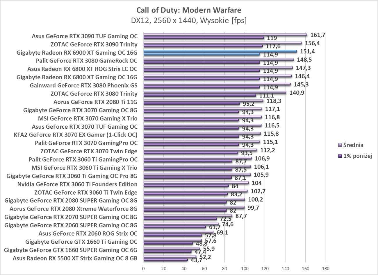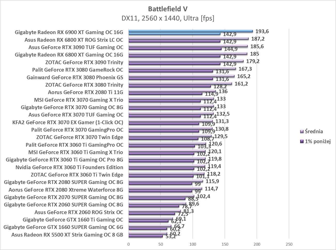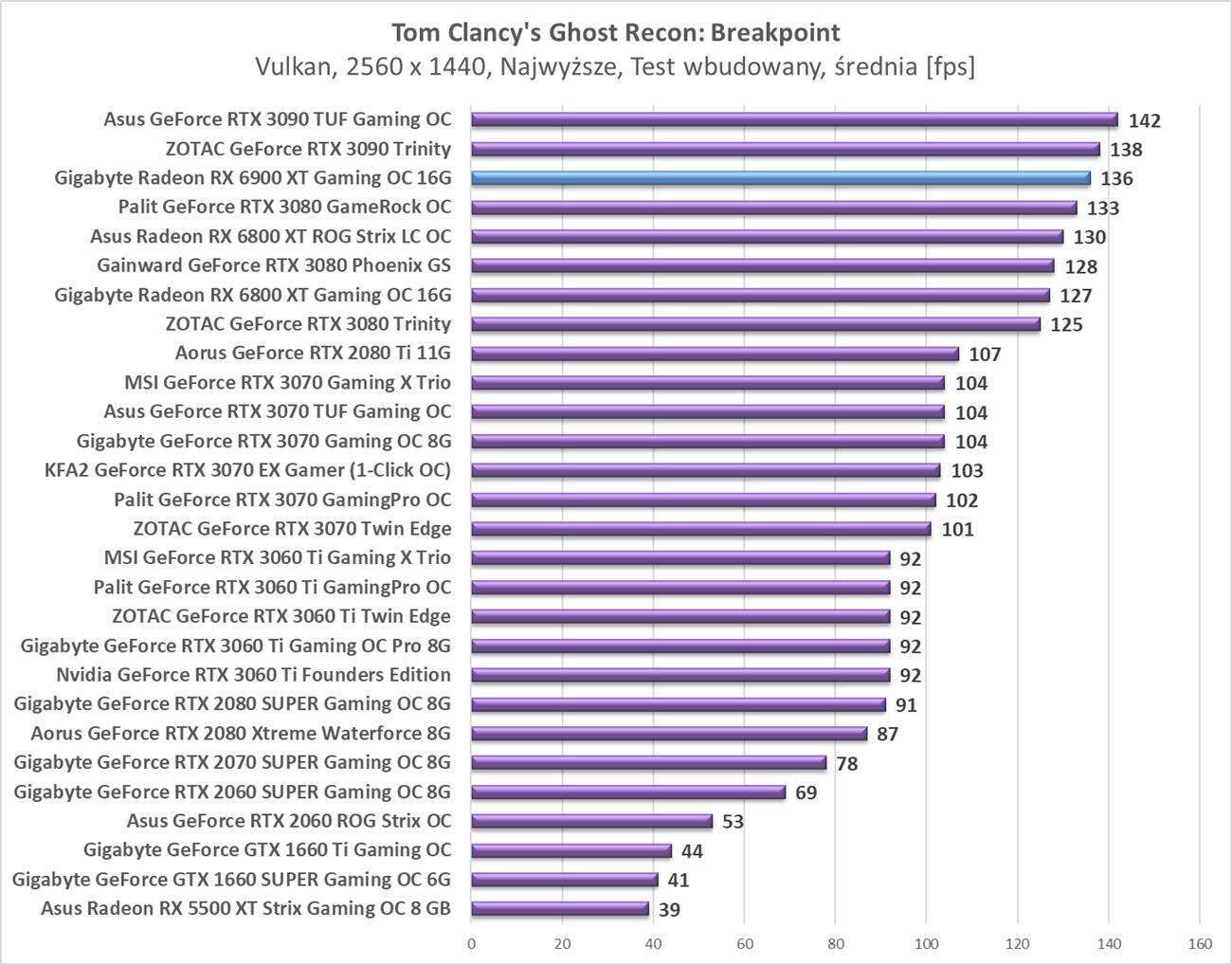 Testy Gigabyte Radeon RX 6900 XT Gaming OC 16G w rozdzielczości 2560 x 1440
