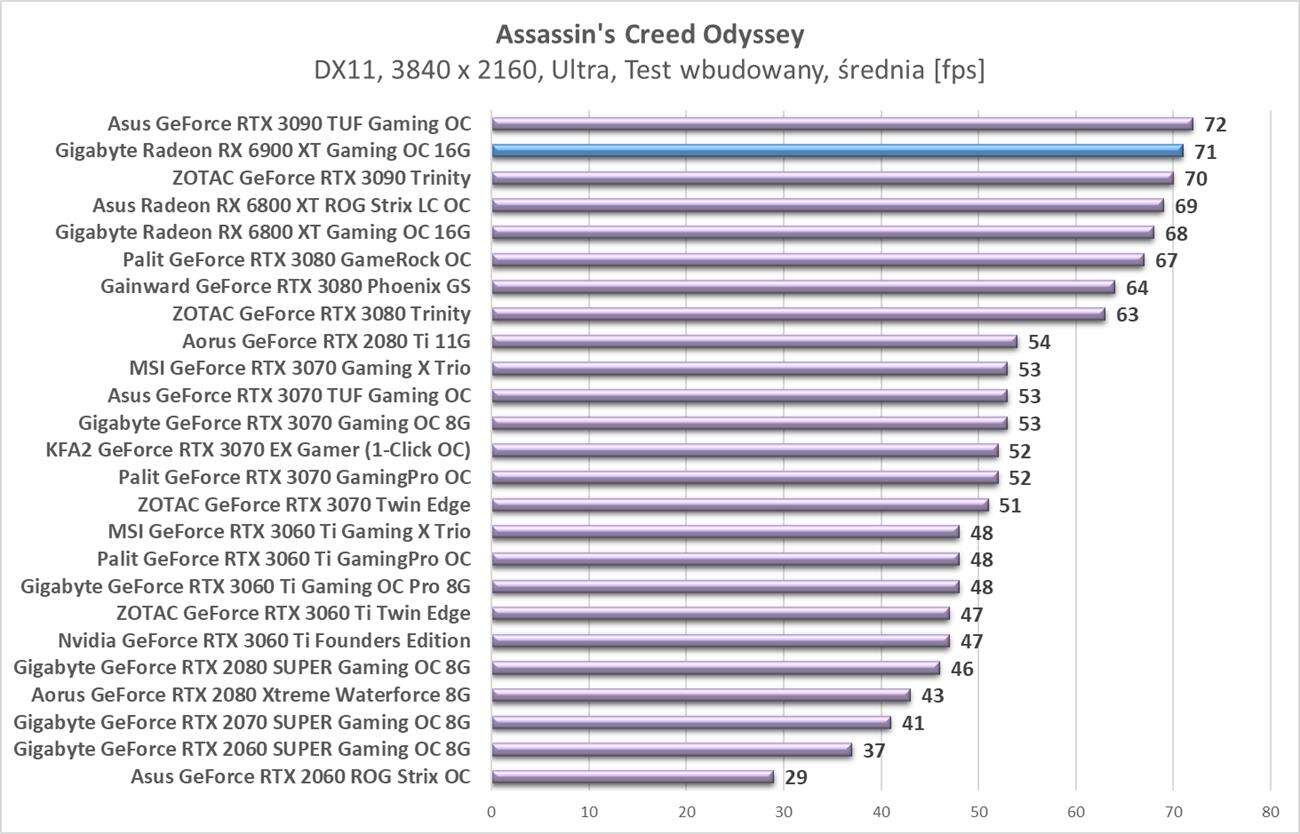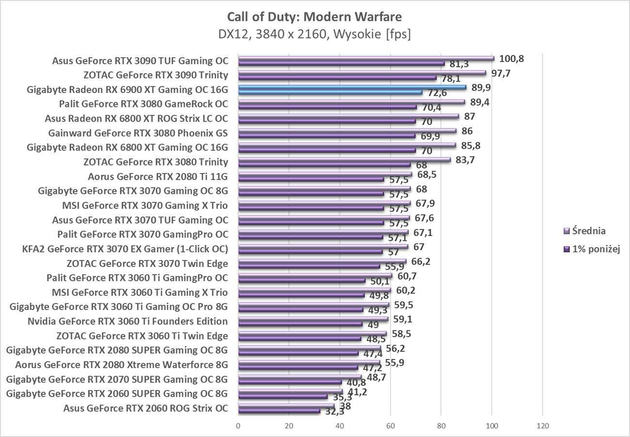 Testy Gigabyte Radeon RX 6900 XT Gaming OC 16G w rozdzielczości 3840 x 2160