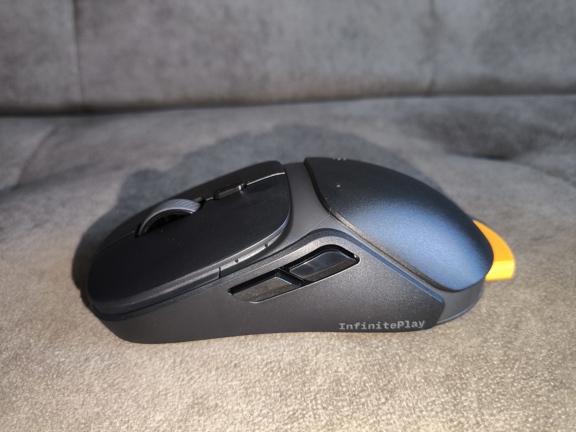 Największym wyróżnikiem pozostaje system zasilania InfinitePlay. Zastosowanie dwóch wymiennych baterii 200 mAh w połączeniu z wewnętrznym modułem Guardian całkowicie zmienia sposób korzystania z myszy bezprzewodowej. Brak przestojów podczas wymiany ogniwa, brak resetu połączenia i realna możliwość pracy bez podpinania kabla sprawiają, że hasło „nieskończone granie” nie jest wyłącznie marketingowym sloganem. To rozwiązanie faktycznie działa i w codziennym użytkowaniu znacząco podnosi komfort. Trudno po kilku tygodniach testów wrócić do klasycznego modelu z pojedynczą baterią, który w pewnym momencie po prostu wymaga podpięcia przewodu.